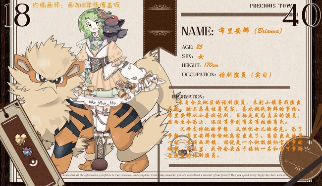 而布里安娜始终无法忘记那一天,少女在四季鹿簇拥下展现的演出。少女笑容甜美,四季鹿娇俏可人,布里安娜被迷住了双眼,演出结束后,观众席掌声雷动,布里安娜也在其中。从那以后,布里安娜梦想话剧演员,或者别的什么演员,但是一定要有宝可梦在身边。