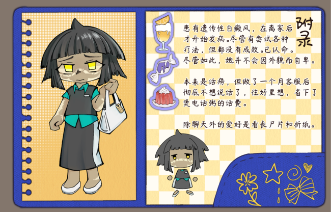 社会管理栋四楼417办公室,一群名为公务员的办公耗材在此饮用免费咖啡。在畜牲老板(字面义)的残酷统治下,他们有的第一天上班就肝脑涂地,有的在无人知晓的角落腐烂三次,但无论如何,十分钟后一定会全须全尾地回到工作岗位:你可以永远信任我们的保险服务。