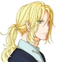 金色头发,卷曲的弧度并不大,整体上比较服帖,浅蓝色偏灰眸子,眼下有一片很轻的黑眼圈,圆框偏光墨镜,眼角有美♂人痣,皮肤白得几乎病态,很容易留下痕迹,不管怎么看都很纤细,红低蓝高。白色丝绸衬衫,深蓝偏紫色马甲,浅蓝色西装,深色暗花领带。深蓝蕾丝内裤。