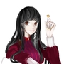 长相:黑色妹妹头,左边的头发稍长一些到肩膀,紫瞳偏蓝,中规中矩的衬衫吊带短裤白袜黑靴。
