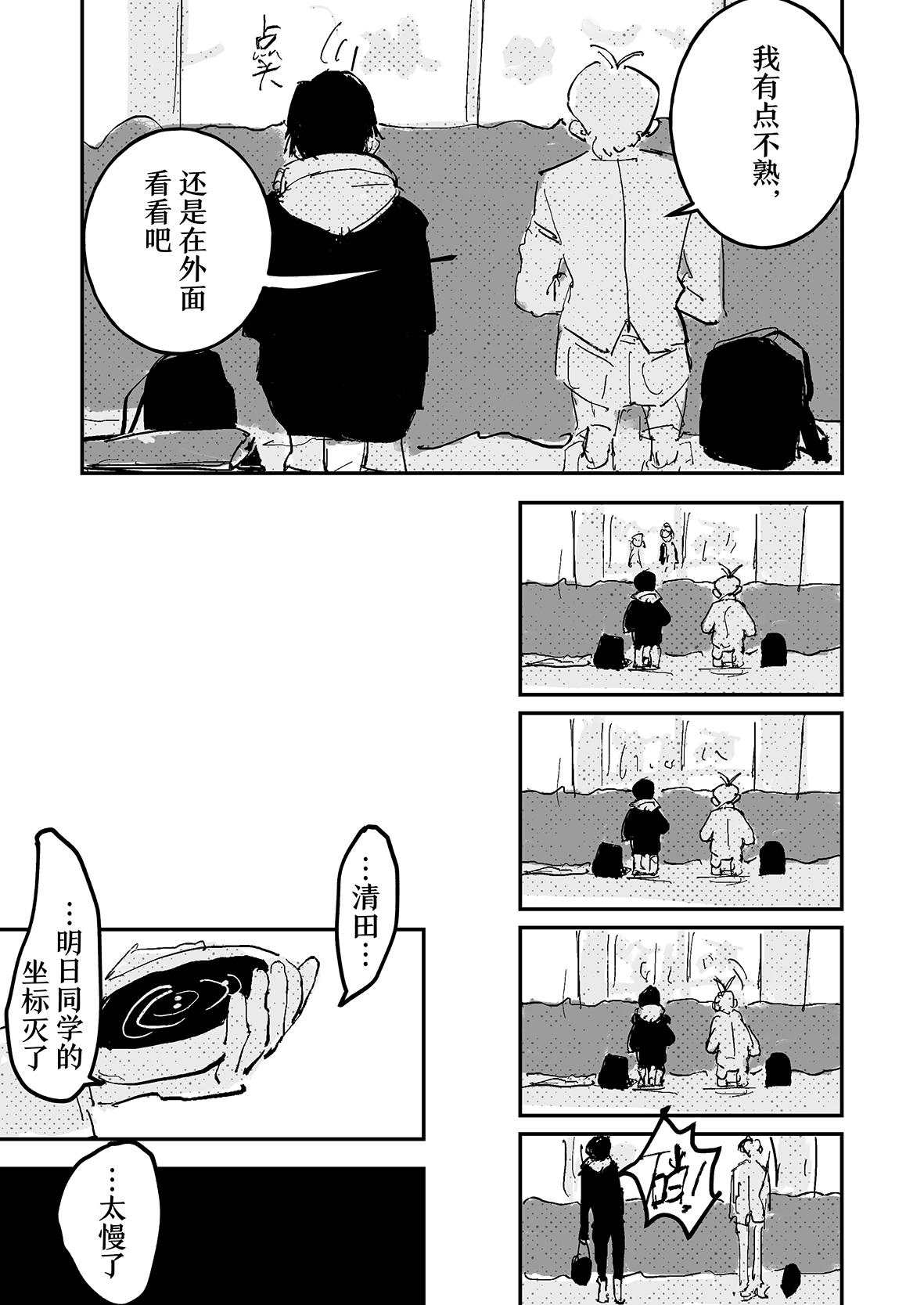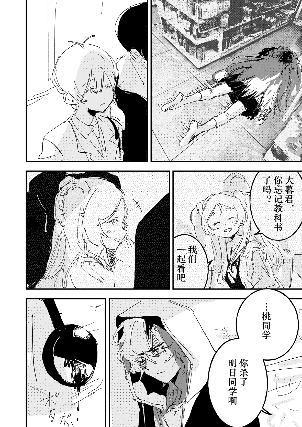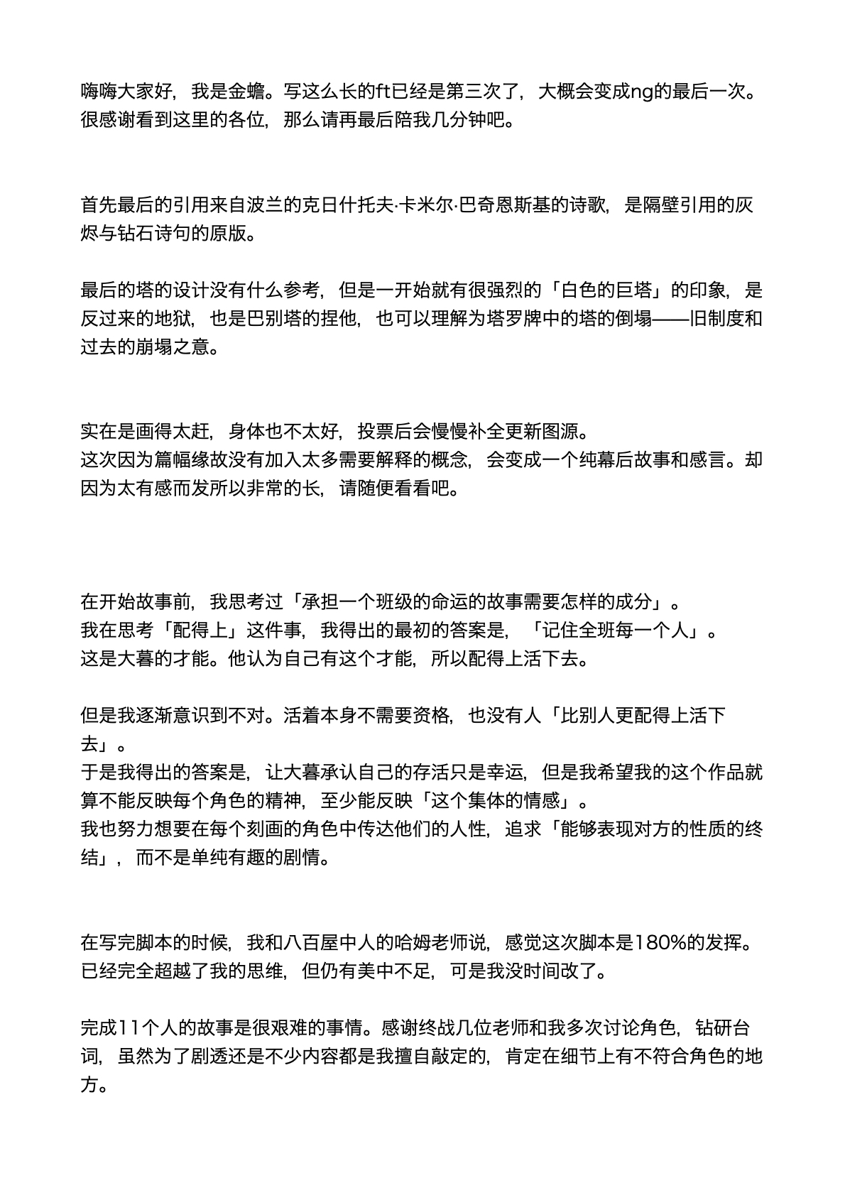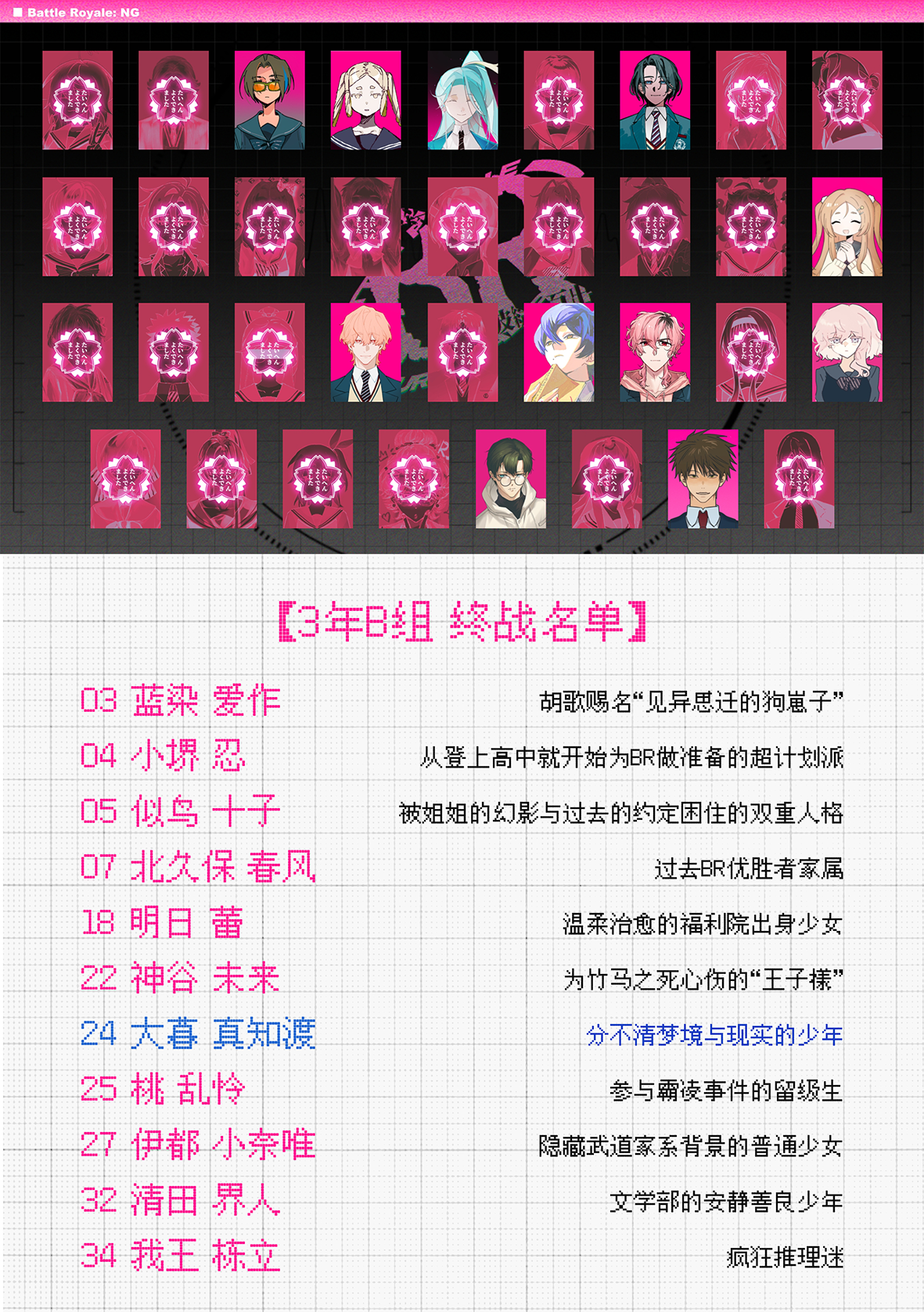 翻来覆去的看了好几遍,这真的是超越了我对br终战该怎么结束能画到什么程度的想象的神作...这居然是一个月内画出来的你中途甚至还花了点时间先画了第三日,太厉害了。全篇的情感我觉得是离了你就再也吃不到的美味,能感觉到每一个人都是活生生存在的人,这种已经再也回不去的日常开场就让我很想哭,贴合角色的程度已经贴到感觉我们全班都是你的oc的程度(oi