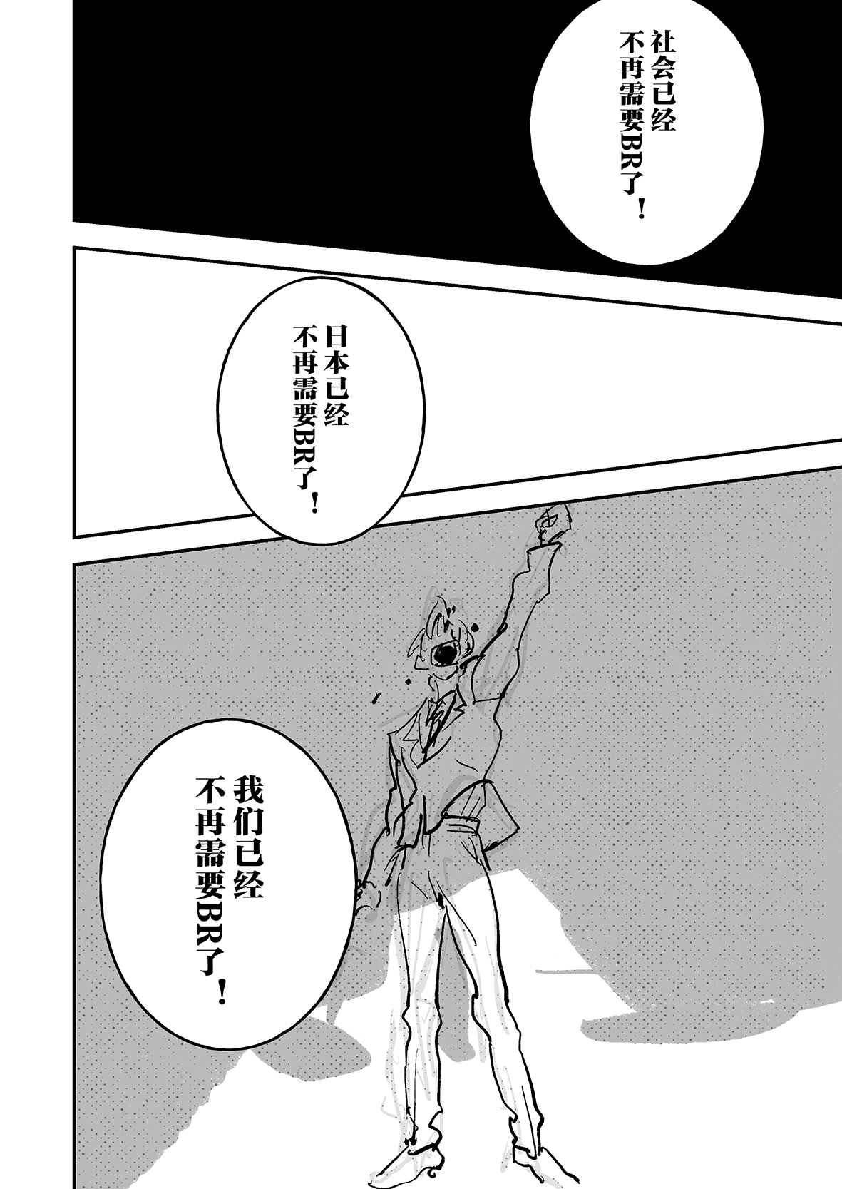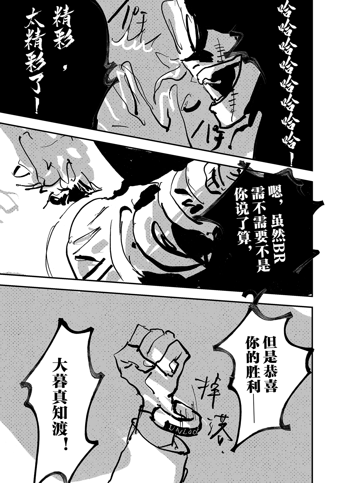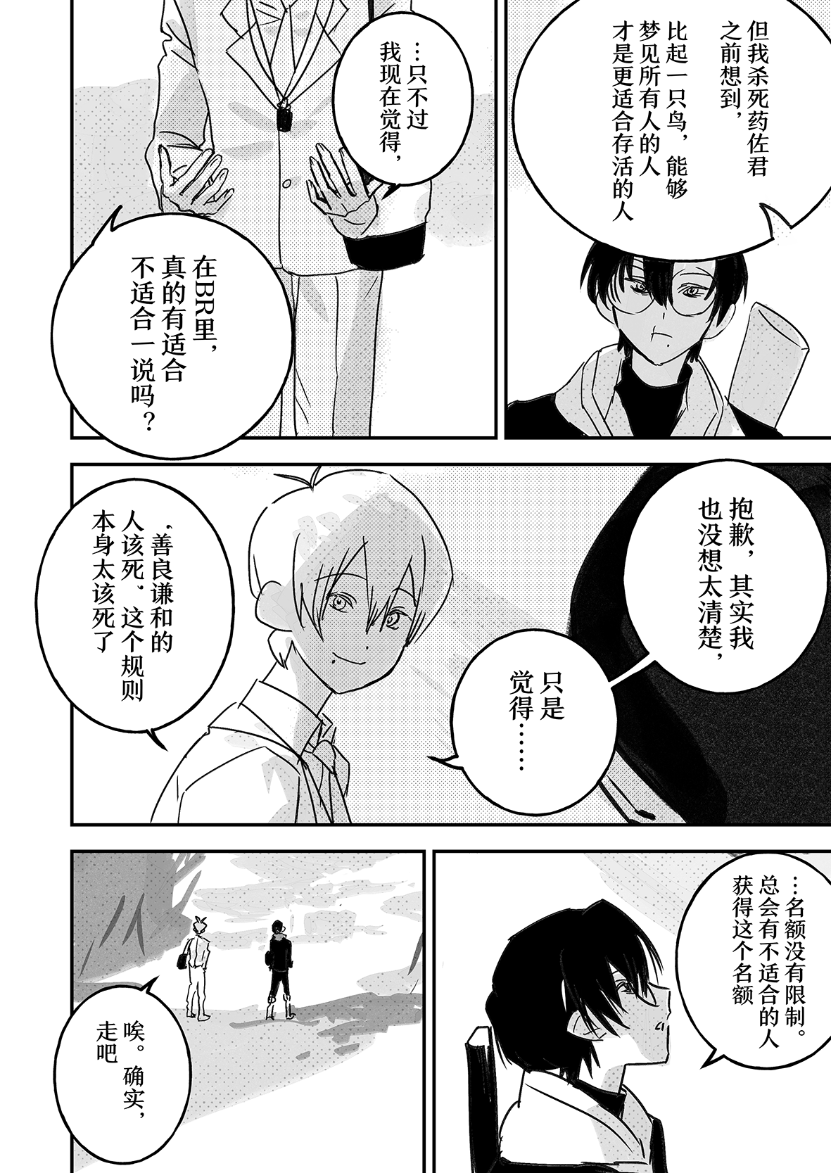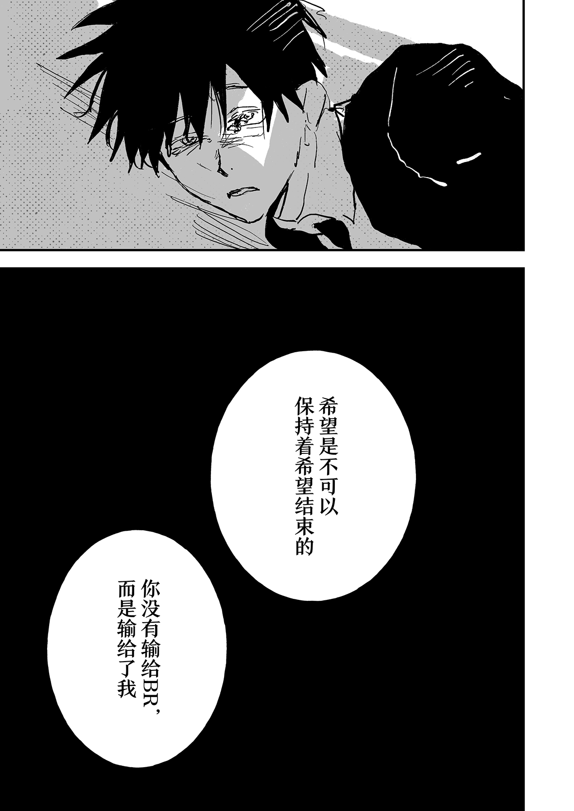 实在是太厉害了…!!不太会表达,但是能够从作品中感受到很深的思考…我觉得这好强大,思考角色的事情,思考他们的期望,思考从BR中一路走来得到的感想,感觉老师好擅长去想这些,看着真的好震撼好感动,这才是真正的漫画!我永远追随……TT