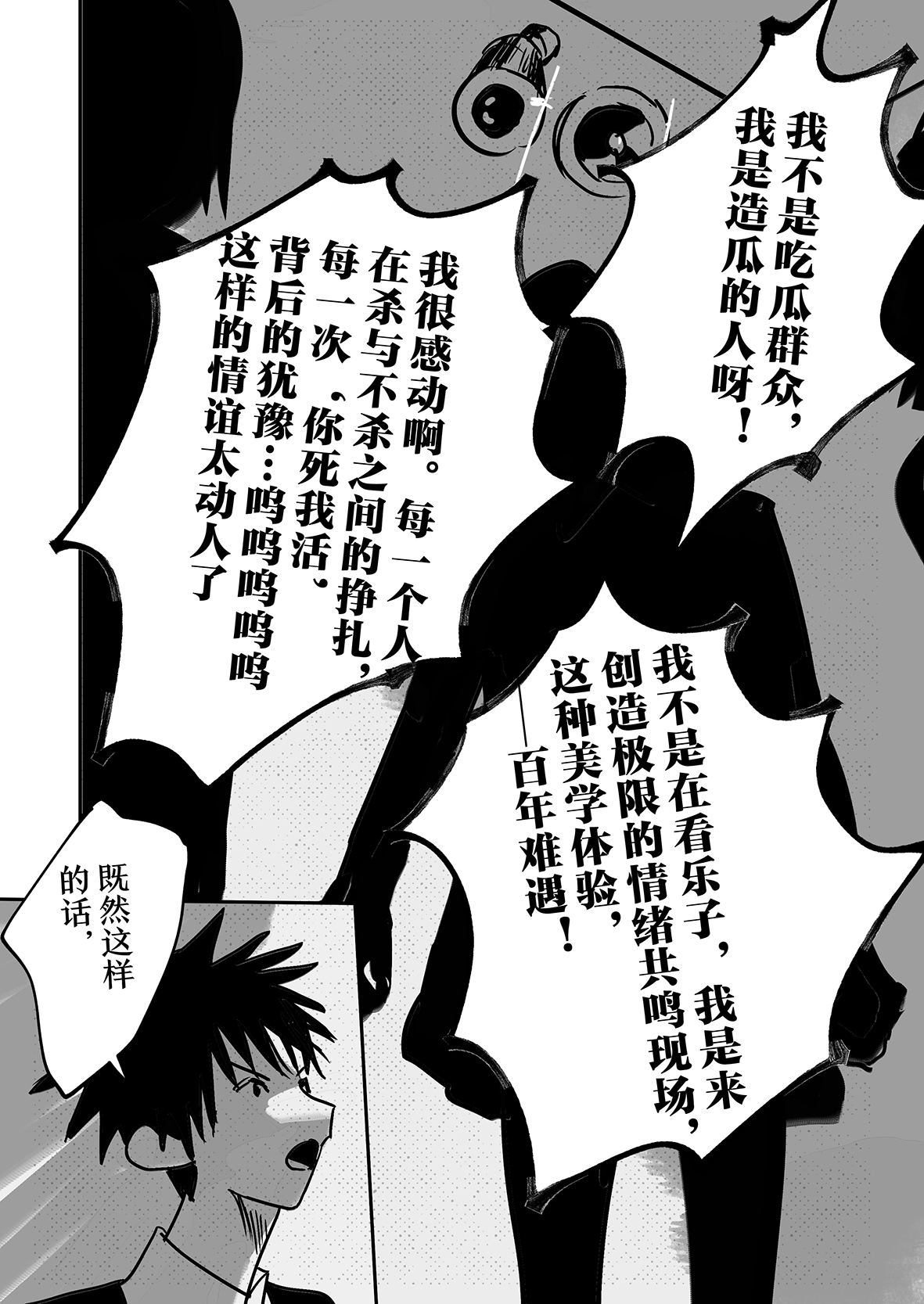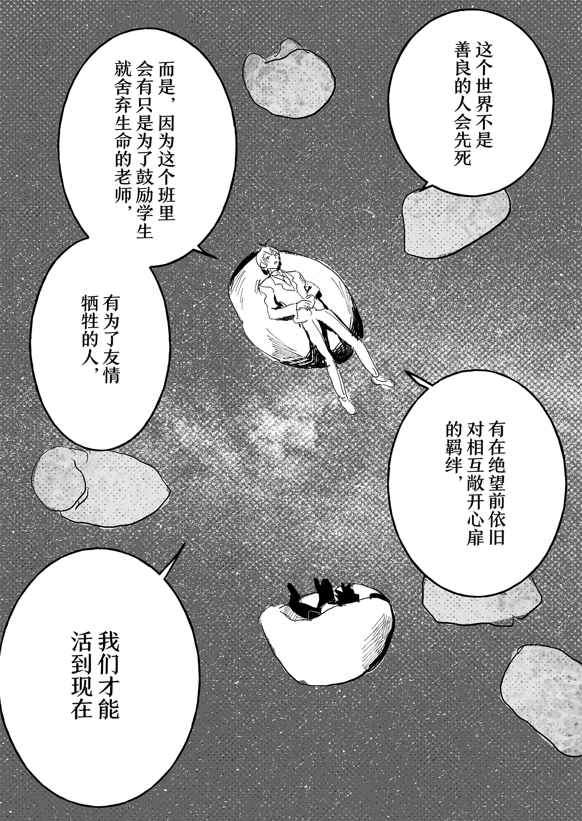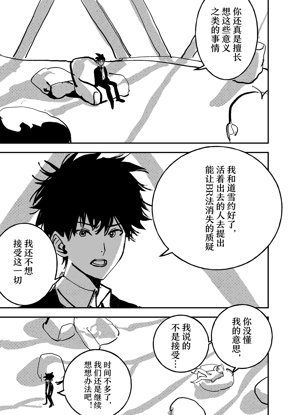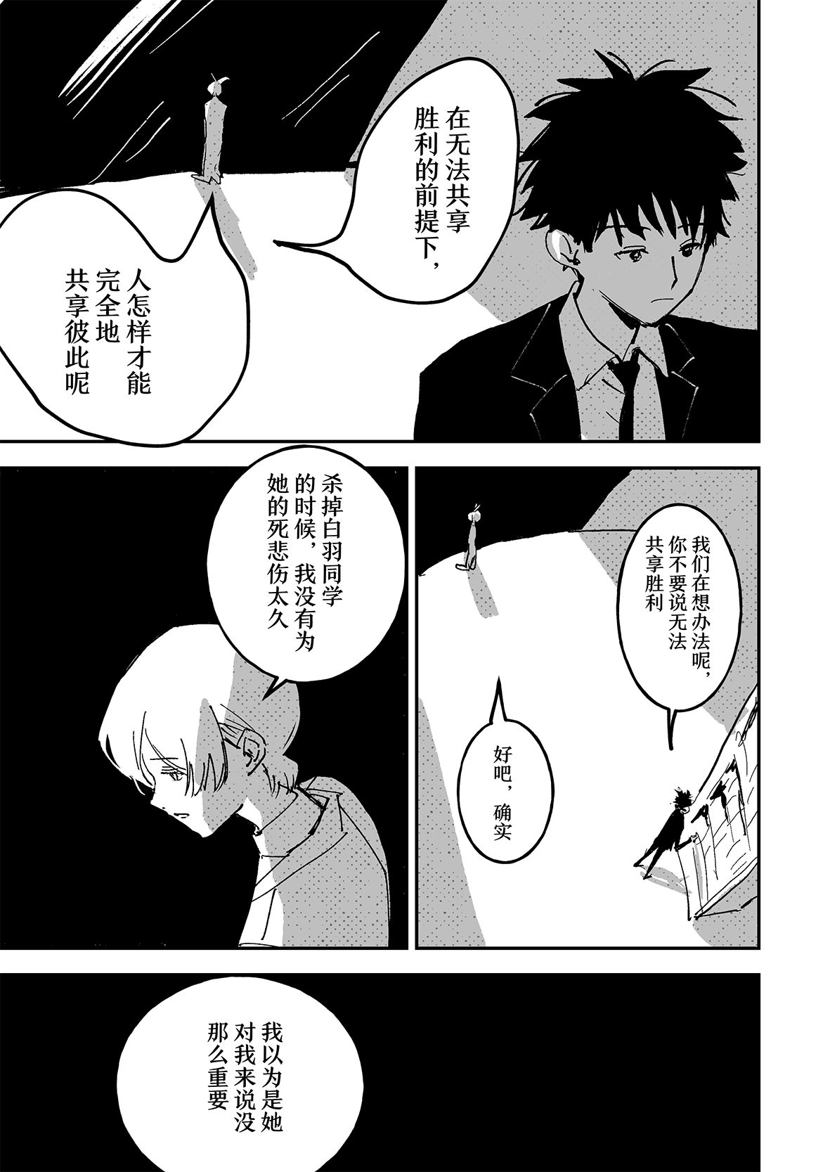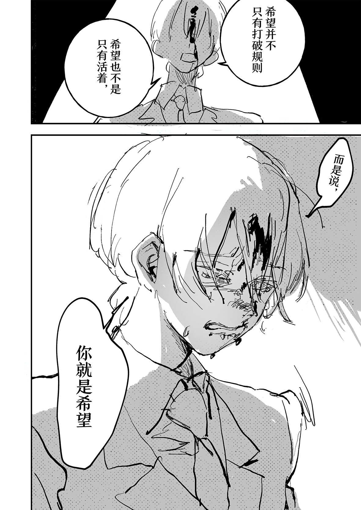 实在是太厉害了…!!不太会表达,但是能够从作品中感受到很深的思考…我觉得这好强大,思考角色的事情,思考他们的期望,思考从BR中一路走来得到的感想,感觉老师好擅长去想这些,看着真的好震撼好感动,这才是真正的漫画!我永远追随……TT