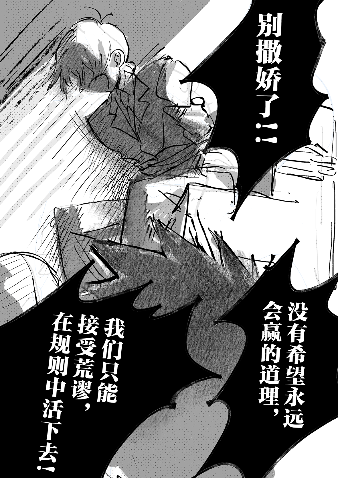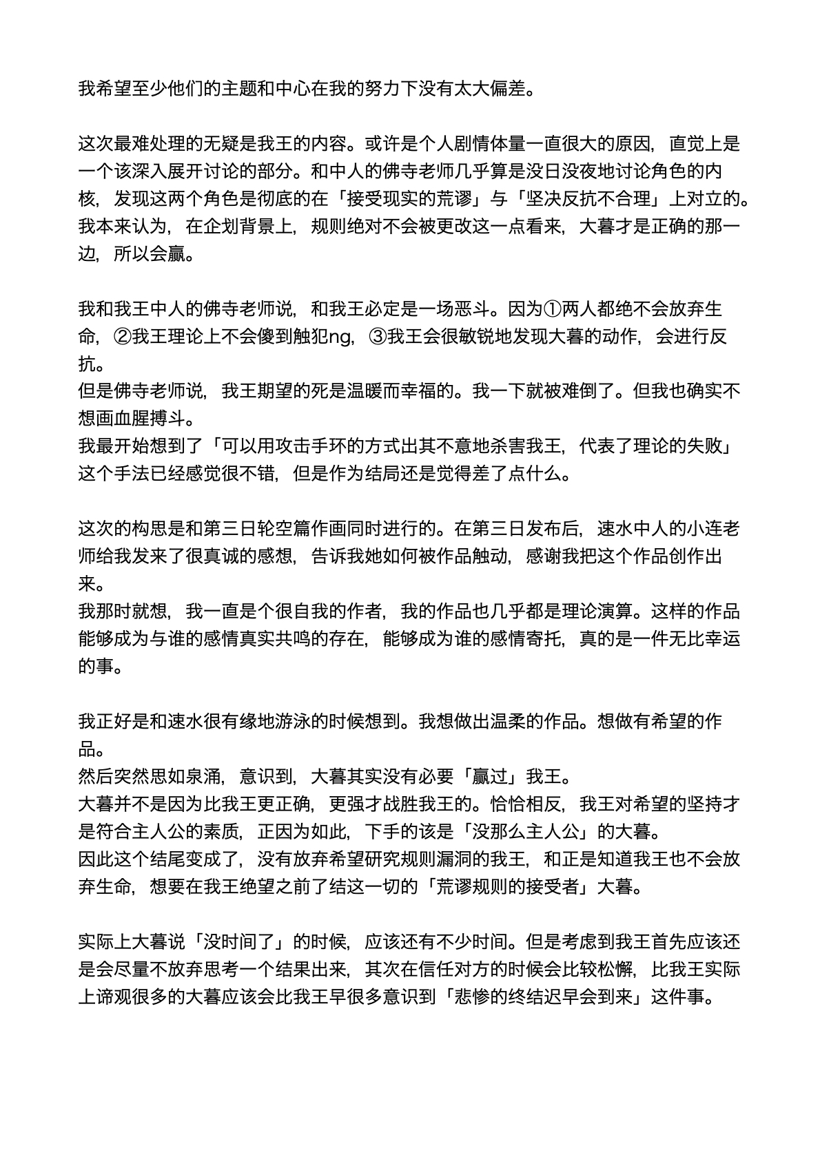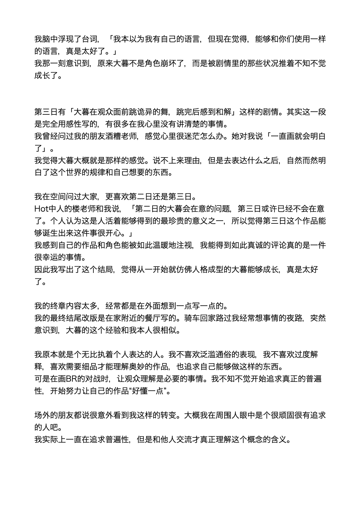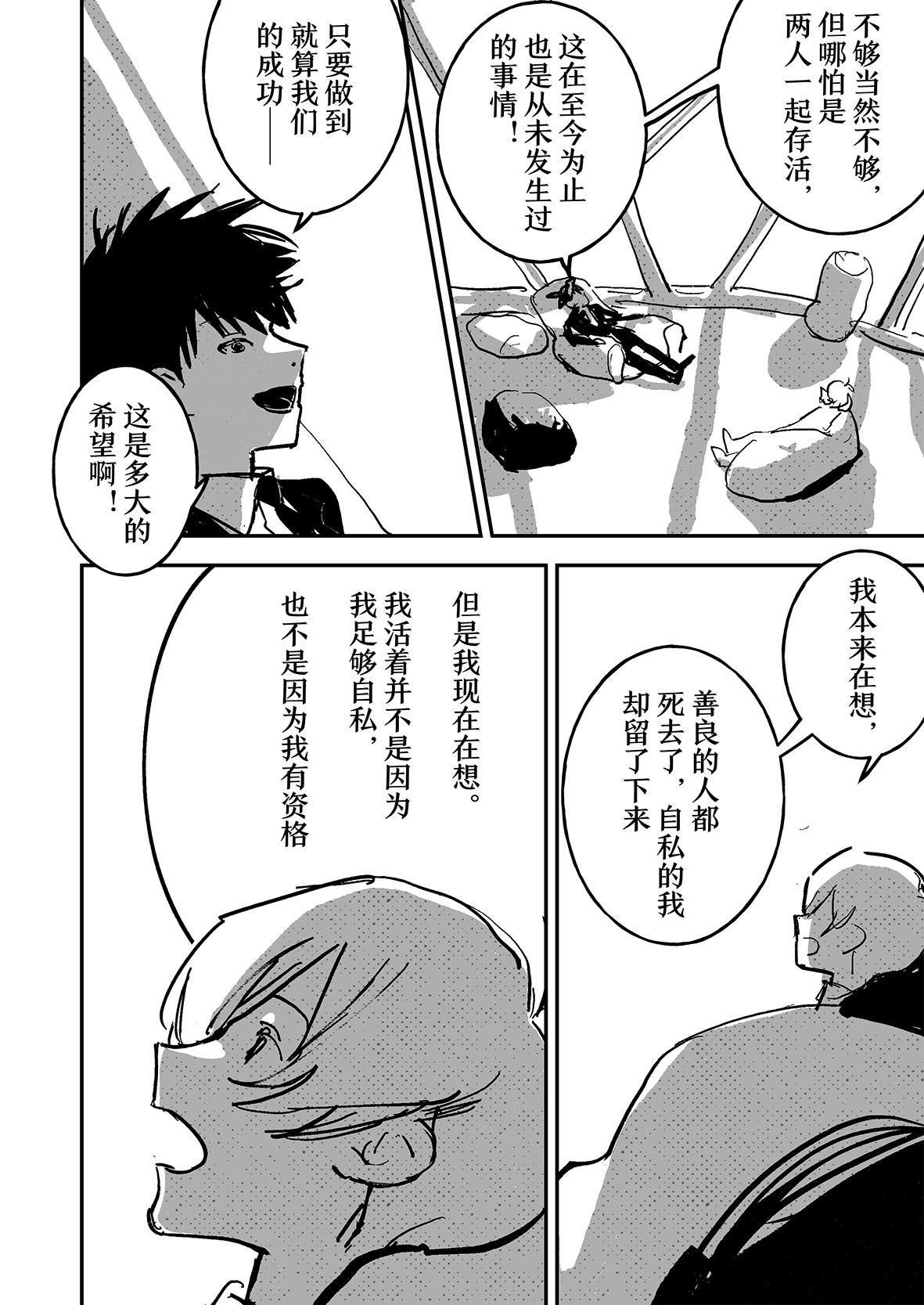 实在是太厉害了…!!不太会表达,但是能够从作品中感受到很深的思考…我觉得这好强大,思考角色的事情,思考他们的期望,思考从BR中一路走来得到的感想,感觉老师好擅长去想这些,看着真的好震撼好感动,这才是真正的漫画!我永远追随……TT