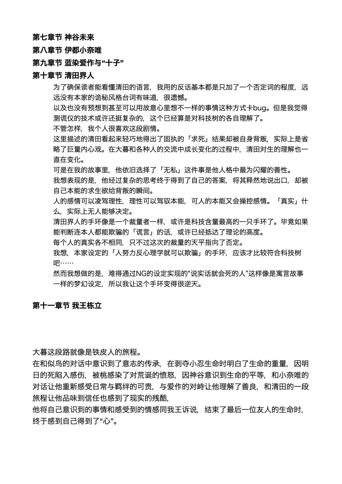 和我王的争论也好精彩,完美展现了两位的思想,站在我的角度上两位都是对的,都很有道理,,我信服你们每个人。太好了,太完整的一个故事了,非常感谢蟾师的创作!