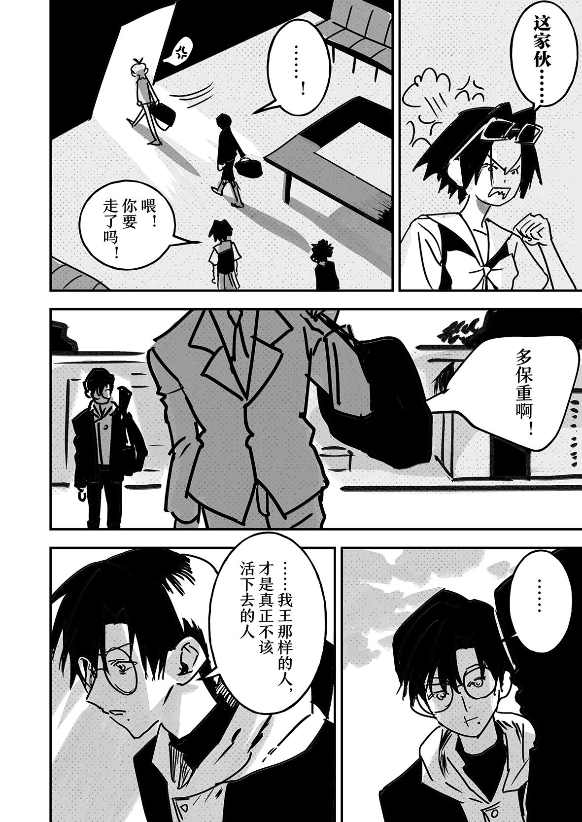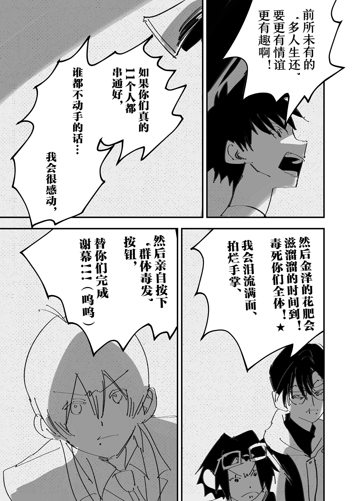 。)你画群像的技术太好了!!虽然每一个part都非常喜欢,但还是要说最喜欢大暮和我王的part了,感觉是极致的浪漫,真的是把br这个世界观使用到了极致...。大暮对我王说你就是希望的时候我也跟着哭了,太好了,真的太好了。看得真的太幸福了。每一个part都能感受到不同的幸福,感觉大暮和很多人都产生了美好的化学效应。。。目前脑子说不出太多的话我之后还会来的,真的感谢你带来了这么好的作品,也真的很感谢你愿意拼到如此程度把他赶制出来我们才能看到,接下来几天好好休息吧金蟾师!