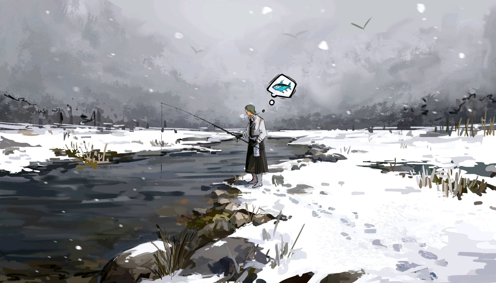 如果大鱼挣脱跑走了,我也不会生气,只是下意识对着河流鞠躬说:“谢谢您的光临,路上小心。”