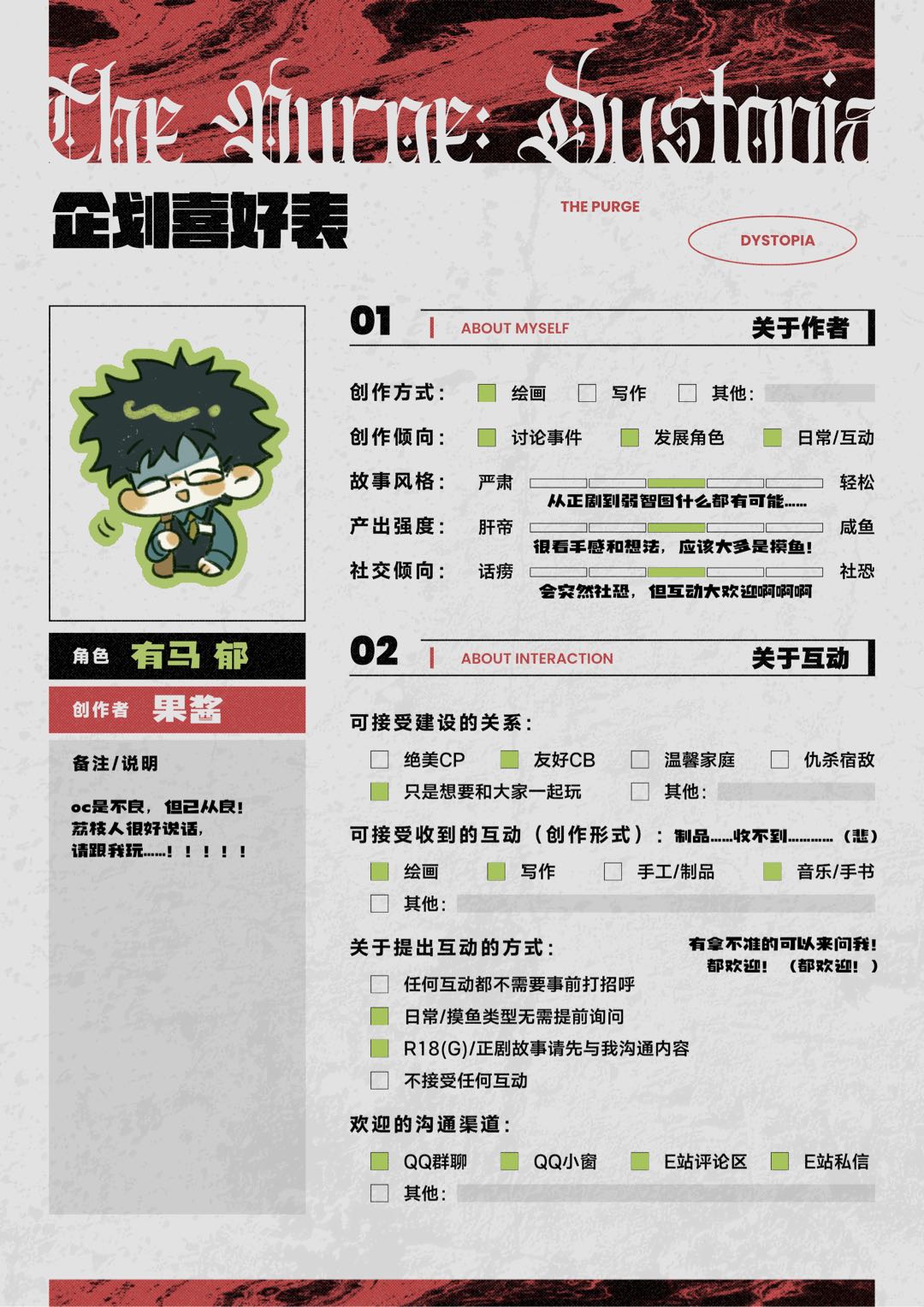 【人设纸-杀戮日V】有马郁