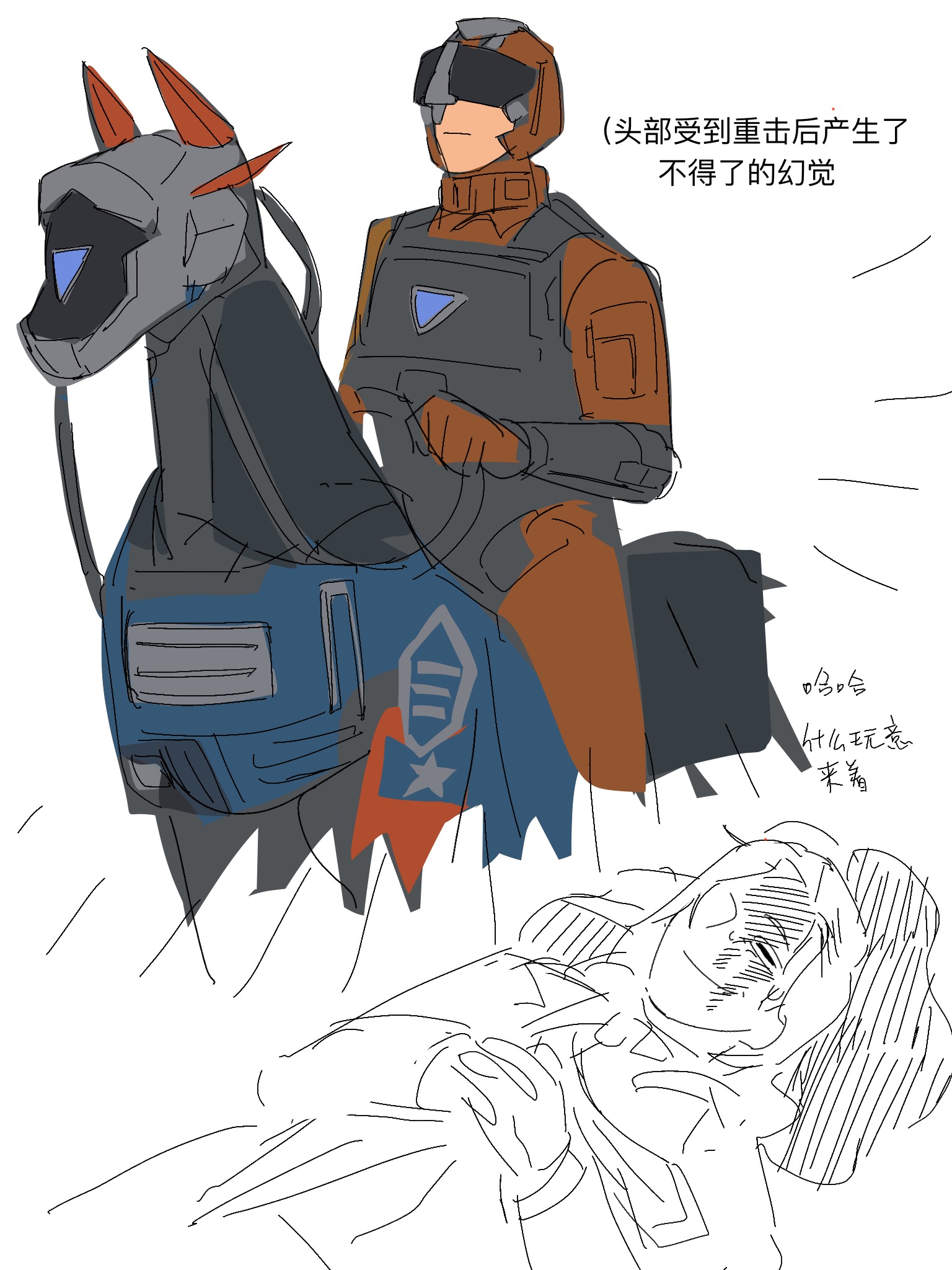 (马也跟着摇头)