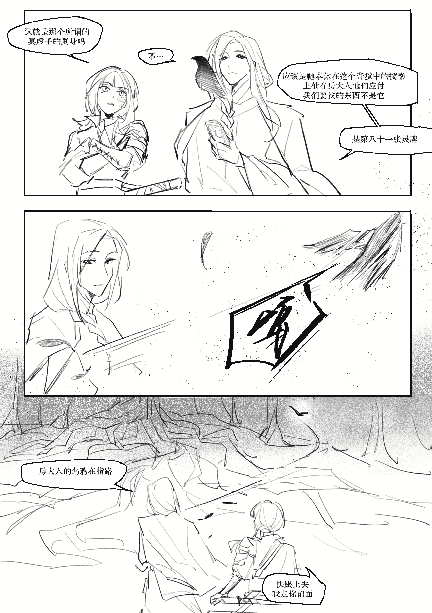 第八十一张灵牌:找到我就折了一个石征服,也太羞辱牌了 房大人乌鸦出镜了也关联一下 没时间了我草稿遁一下……大家将就着看(扁扁地走开) 画完感叹一个精神病人(梅瑛)和一个谱系人(梅钺)相处模式竟然这么阳间,负负得正了