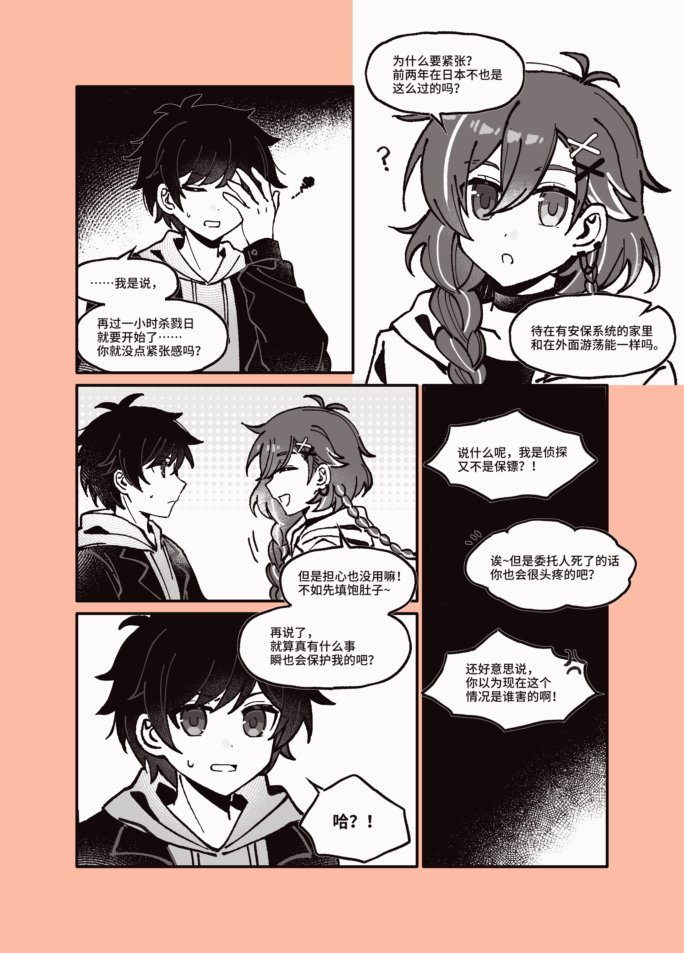 哈哈哈哈可爱,吃饱了才有力气自卫嘛!一个情绪稳定一个操心劳碌命,两人的优点正好互补了,一定能一起活着迎接明早的太阳!