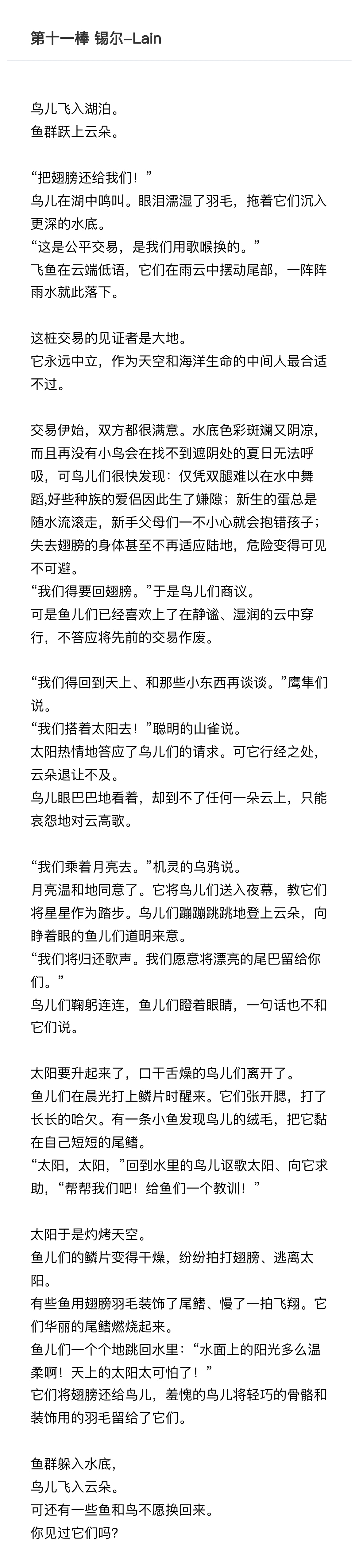 第一届瑟伯林童话接龙大赛正式圆满结束,感谢一共15+1位玩家的参与,才成功早就如此多姿多彩、高潮迭起、精彩过山车的接龙故事,具体有多精彩请立即点开长图一览究竟