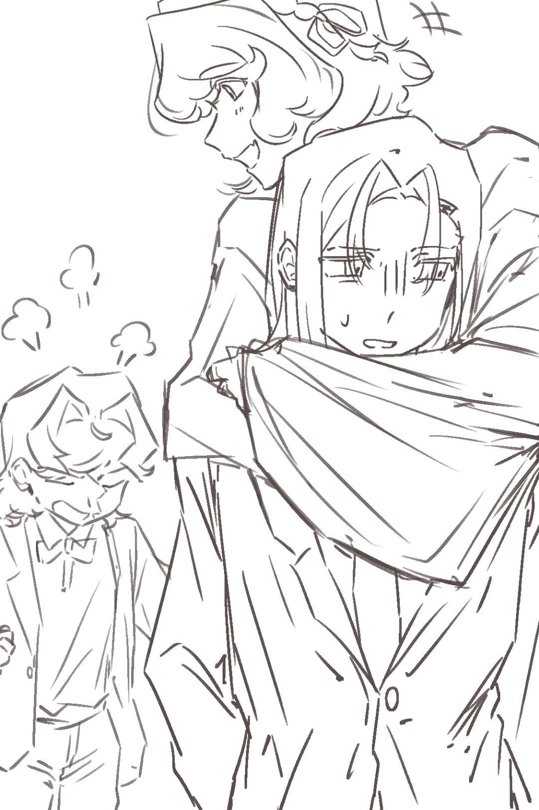 p1更新了一些角色细节,因为有上色的场合换了笔刷,趁机画了一点潦草qq人…… p2画了大河狸前日谈2很萌的三人 画布好像又开太小了怎么会这样