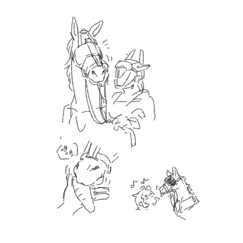 (馬晃尾巴)(馬再次嗅了嗅胡蘿蔔)(馬吃下了)(馬感到高興)(馬哼哼鼻子)(馬把腦袋伸向滿是機油味的人)