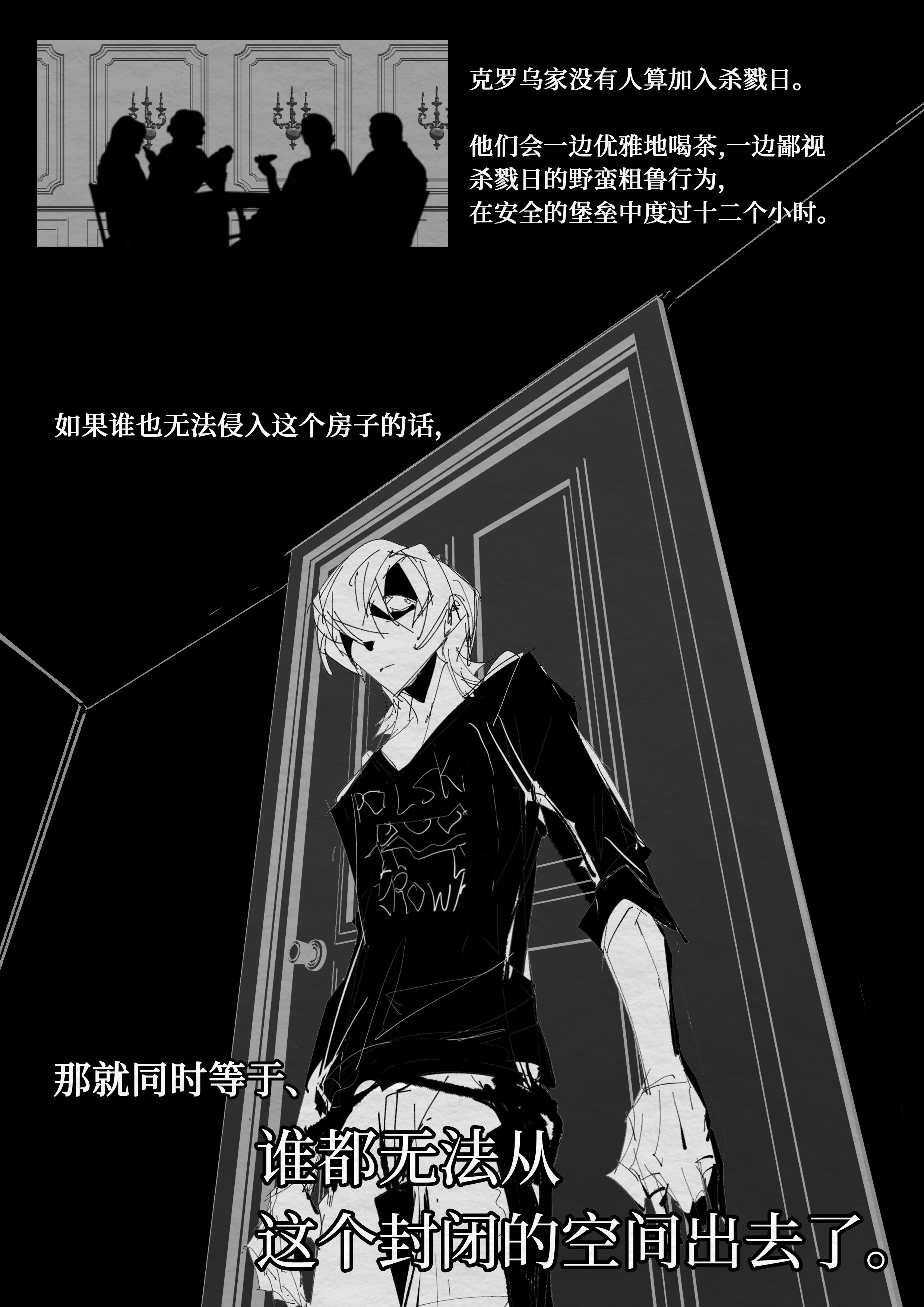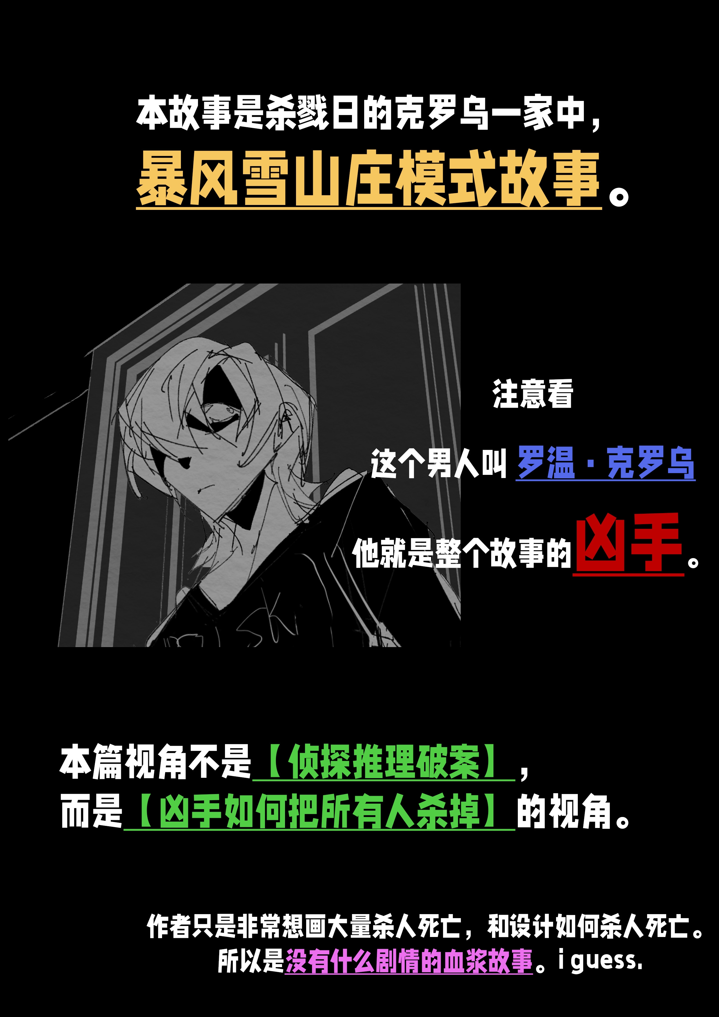 卧槽竟然是这么爽的内容!?像悬疑片一样阴暗的压抑氛围塑造得好到位,,令人不由自主开始期待正剧的血浆现场了!(wakuwaku