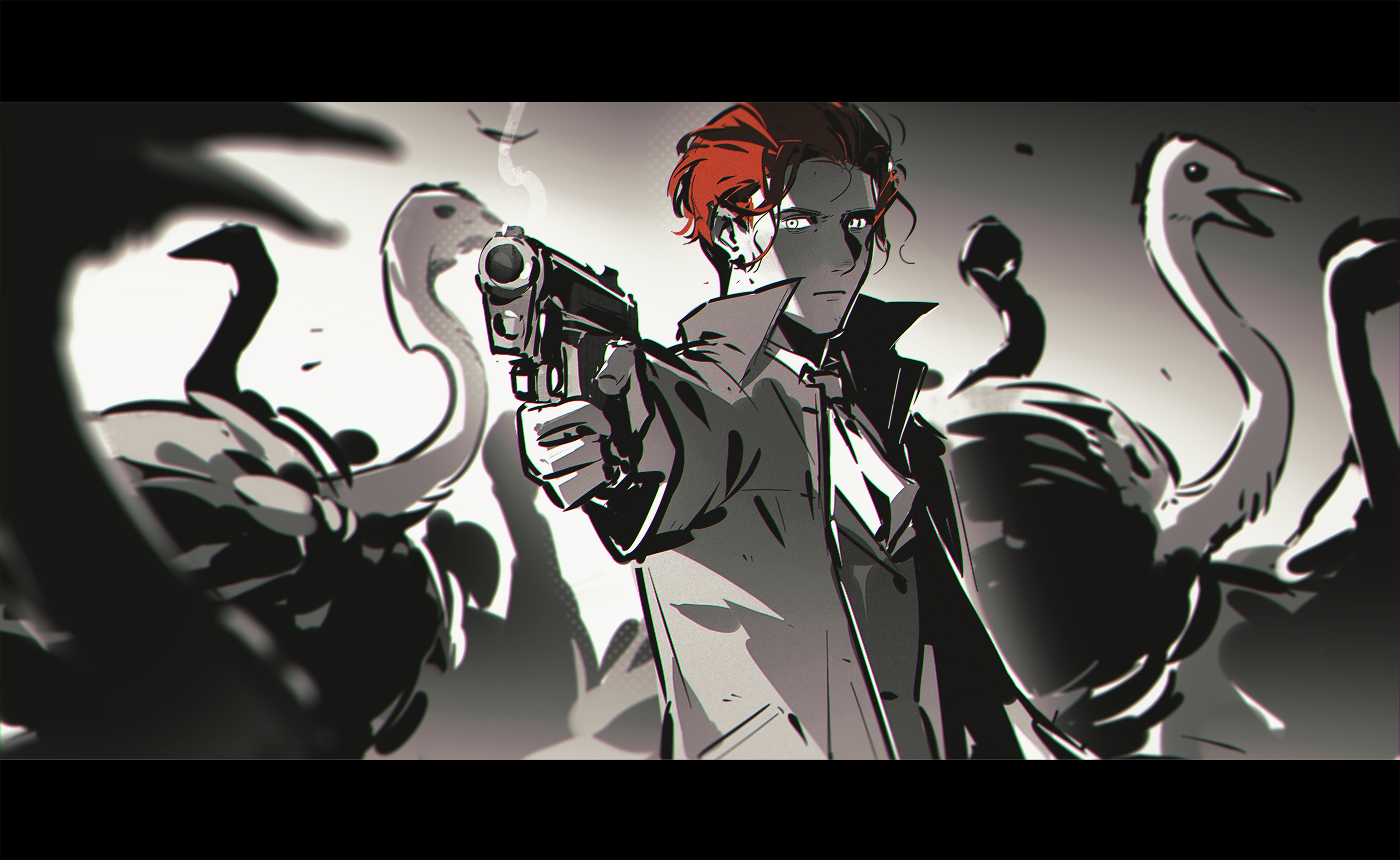 (实际上因为我先画了草稿结果正文出来后发现有动作对不上啊啊啊啊啊笑的,比如最后小杰是朝着小纳脚下开枪但我画成了牛仔对射的感觉jpg
