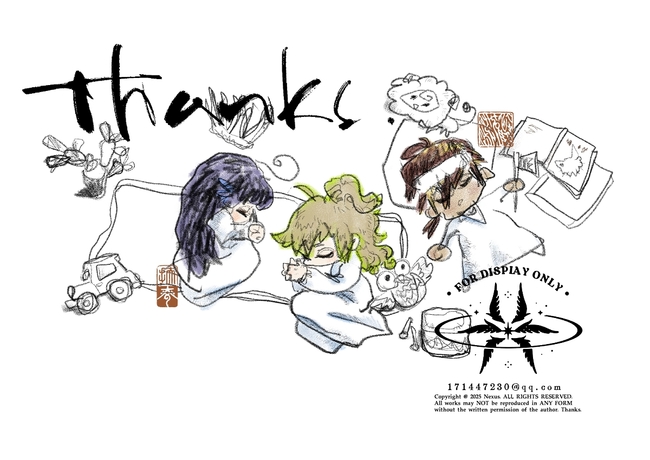 线稿有九成是用左手画的,画面中有很多(因为不习惯使用左手而产生的)歪歪扭扭的稚拙线条,完全是和右手作画不同的风格,我很喜欢,这样类似开盲盒的作画过程很有趣啊!