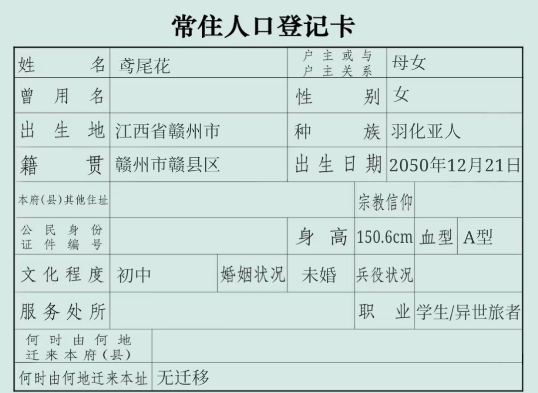 小鸢的户口本