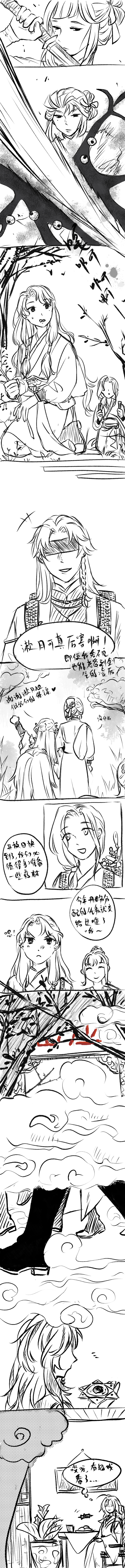 啊啊啊啊啊啊受不了了,好喜欢男高日常这个梗,漱月师姐帅气砍了妖之后接的是换装梗太好笑了,总之大家还是热热闹闹的过小日子看起来太舒心了......日常系的神,荚咪师姐——