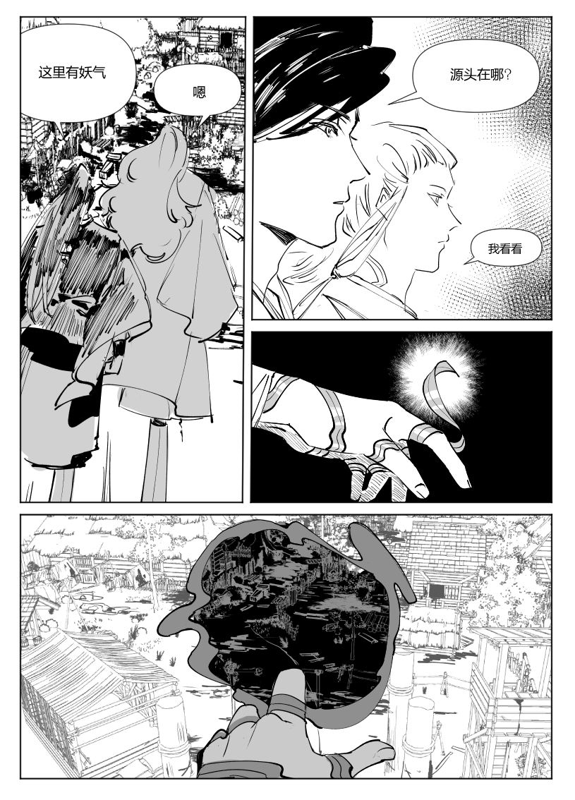 好喜欢把价值观差异通过灭村案托出来的地方,作为序章主题太漂亮了,北斗流云纹用得也很漂亮!好用心的设计。对不同的关键词有反应的两位的神情变化也很有意思。一如既往电影般的调查分镜和引入,果子精灵(嘘)太有趣味性了超超喜欢,虽然联想到妖性本恶觉得这里应该就是诈骗了,但还是被骗了一道,这就是无法捉摸的道啊(?),另外太喜欢这个反差恐怖goru氛围了连夜骂了五百遍虫骸。期待两位这样的差异之后会产生怎样的……矛盾?不要破戒还俗啊玉衡!