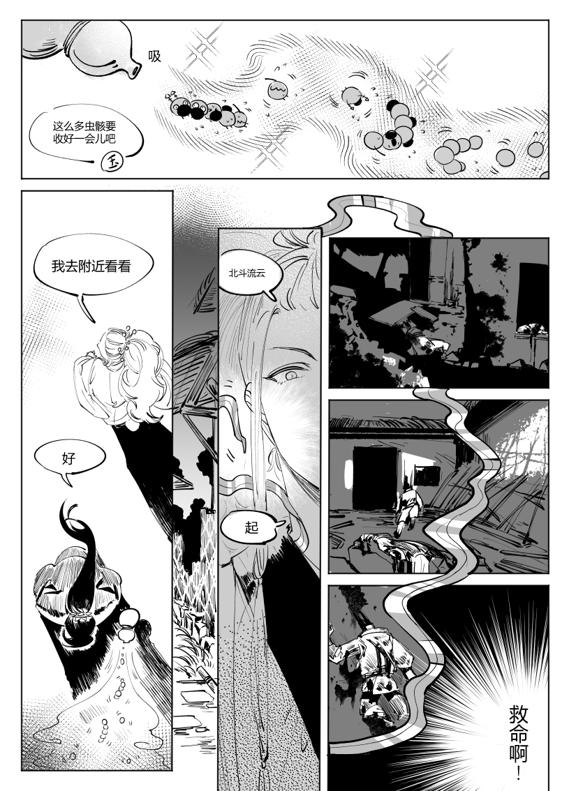幼童逗弄蛐蛐,不知是否有层隐喻。开篇太有中式聊斋故事那种感觉了,村里的交谈加上虫骸的出现,玉衡的御剑飞行,让人觉得必是妖害人斩妖除魔的故事,结果不是,妙啊。(御剑飞行那格好帅啊!)