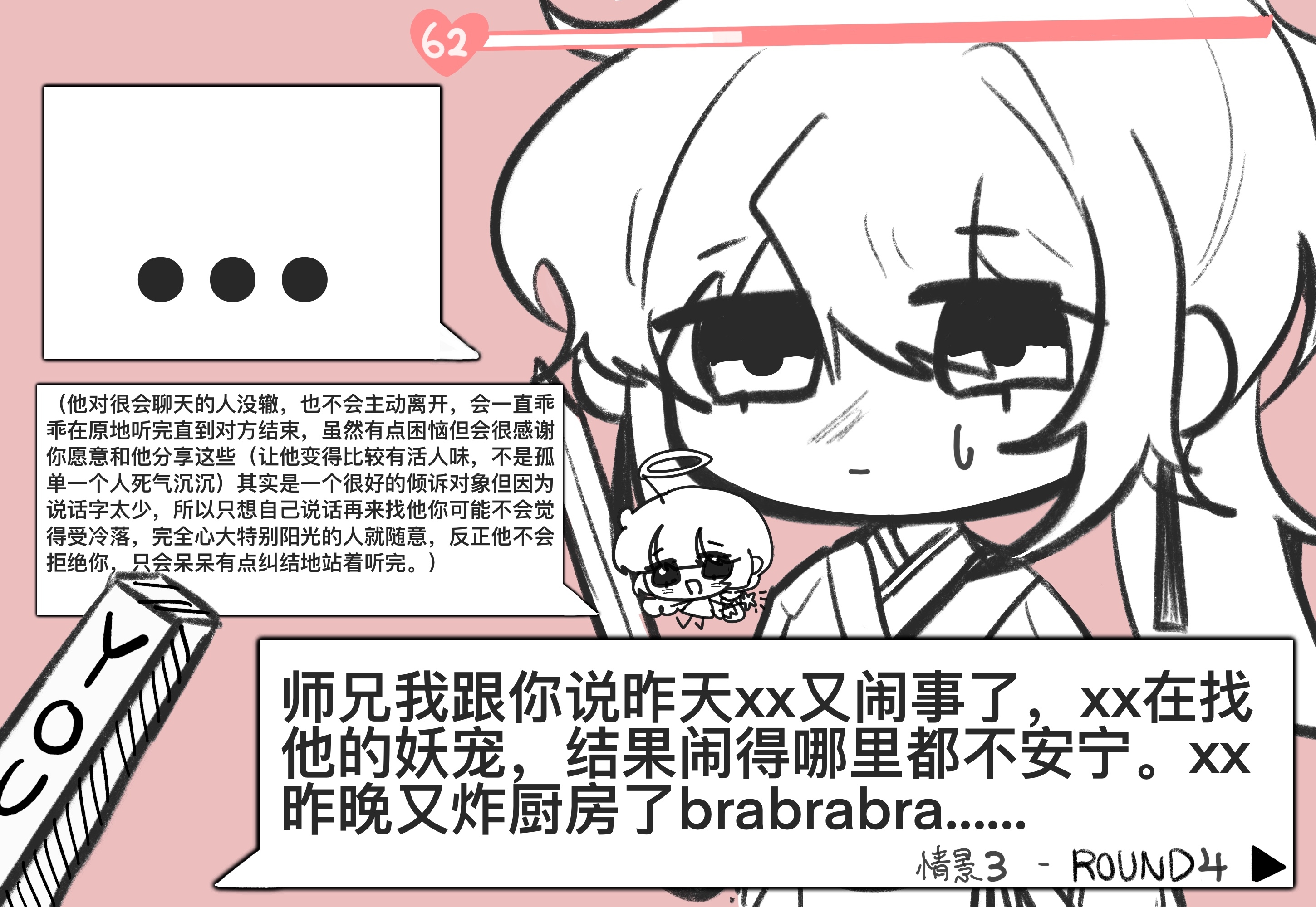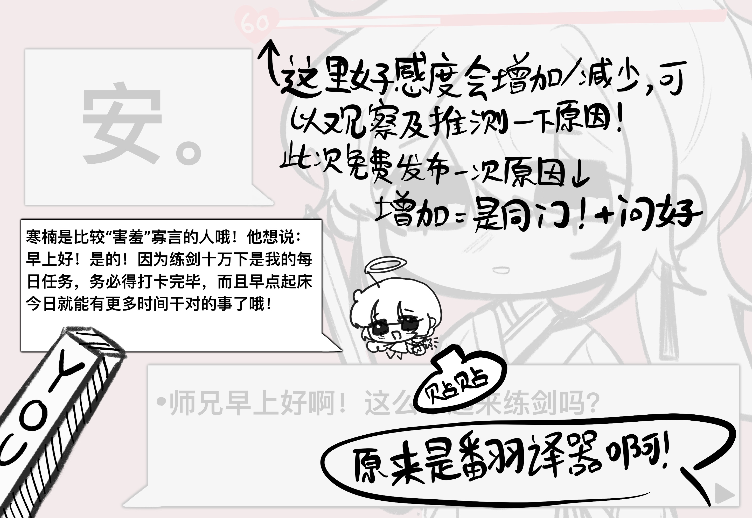 来介绍一下这个冰块的说话方式,其实我有想语c试试但是他!说话真的!太!少!了!用单字最符合他人设了,但我很担心这样看起来他的互动很无聊(虽然他确实是很无聊的人),我努力过了TT