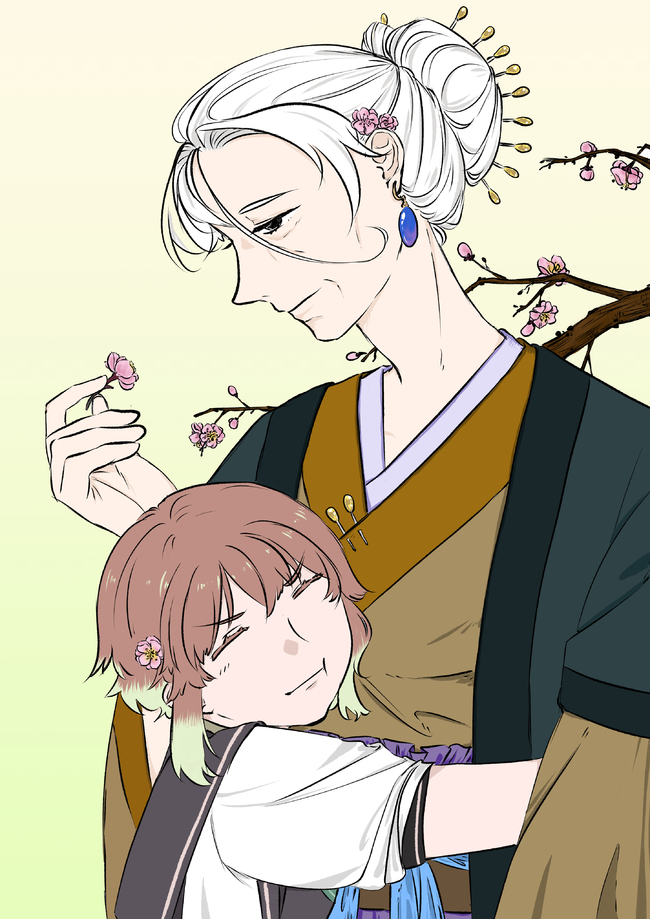 好会画,很喜欢这个画面氛围,很有春天的感觉!!两人头上还有花,太用心啦!喜欢!!