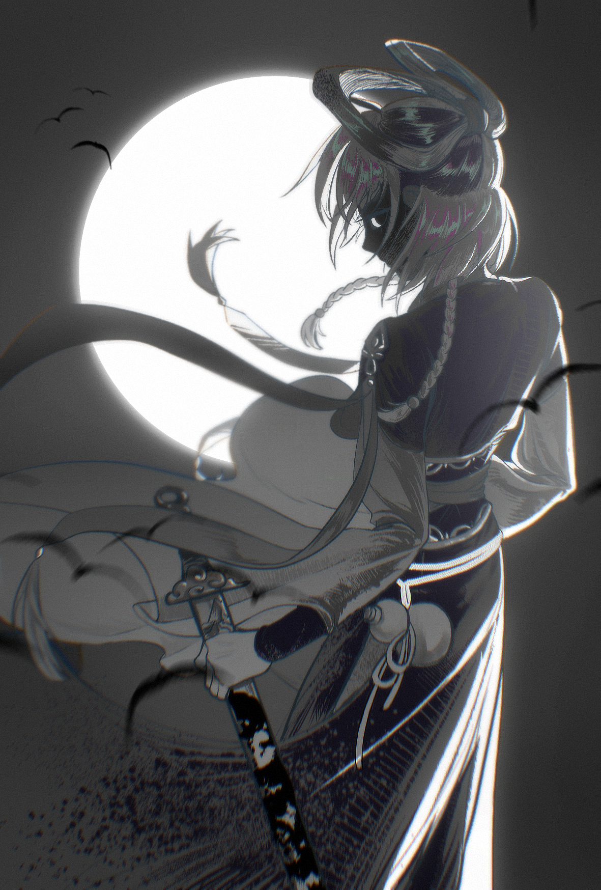 美丽……圆月下警觉冷静的三花猫咪 ?
