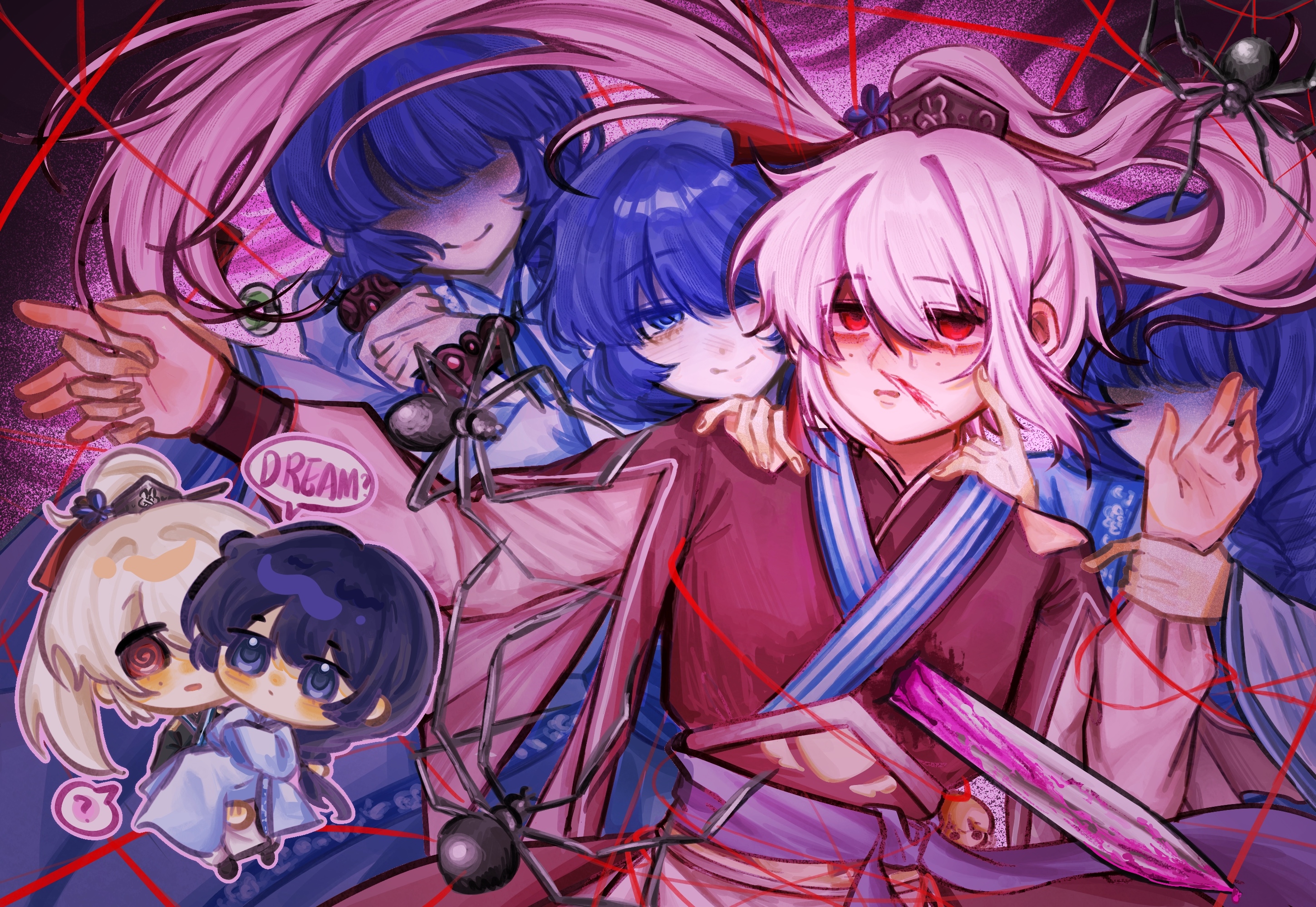 噩梦¿¿春梦 ?? 我的执念万万千千…… ❃~❃~❃~❃~❃~❃~❃~❃~❃~❃~❃~❃~❃~❃~❃ 又做梦了。 进山五年来,每个夜晚,都有你的身影。 可笑吧,我竟分不清梦中的你对我来说究竟是噩梦还是美梦。我欣喜于还能再见你,痛苦于不能再见你。 闭上眼,仿佛你就在身侧。睁开眼,你却又消散于无形之中。 你还在怪我吗?怪软弱的我,无法保护好你;怪沉默的我,没能在那天来得及问你去哪;怪无能的我,无法尽快报仇去陪你…… 请你等我…… ~❃~❃~❃~❃~❃~❃~❃~❃~❃~❃~❃~❃~❃~❃~❃ 哦哦大概就是进山五年间的心境及梦境刻画,有点抽象,偷偷藏了一些不知道会不会用到的暗(其实蛮明显)喻,大家可以猜猜看 应该暂时不搞亡妻回忆录了?除非有新的想法!毕竟妻子已经死了,十年过去他也成长了些(心理) 很甜很甜,甜素我哩♡