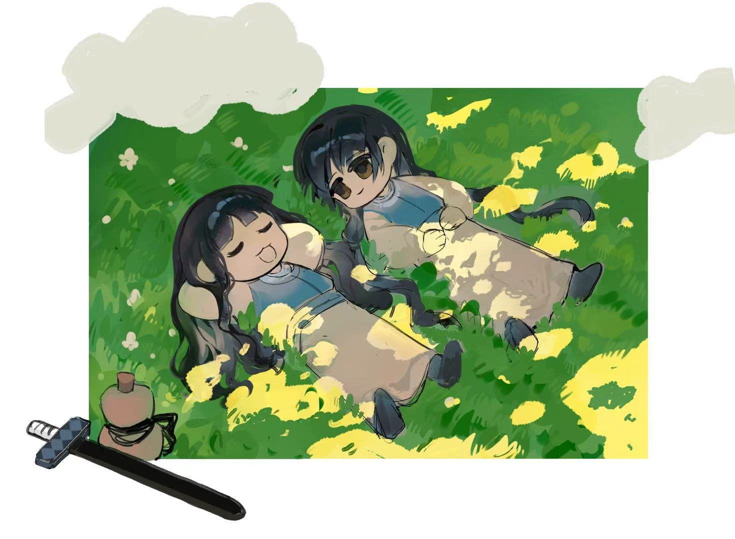 和小师姐一起在草地上聊天
