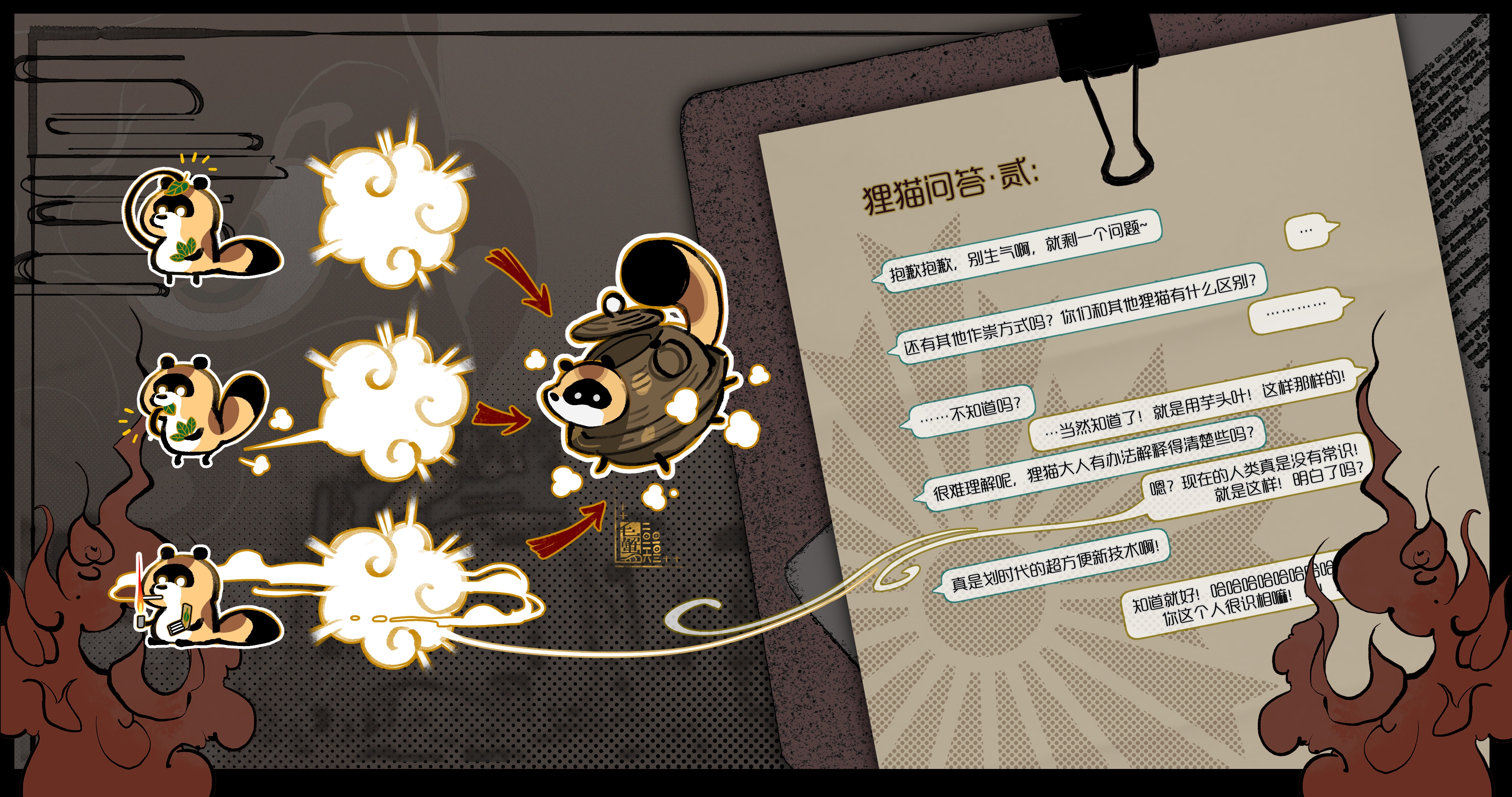救命怎么这么可爱……我一定要在剧情里摸到原型!一想到曾经有一整个村都是这种萌萌狸猫就好唏嘘,现在是被时代所孤狸了呢……(好冷) 把叶子加工成卷烟好合狸,怎么看起来委屈巴巴的,更可爱了hhhhh