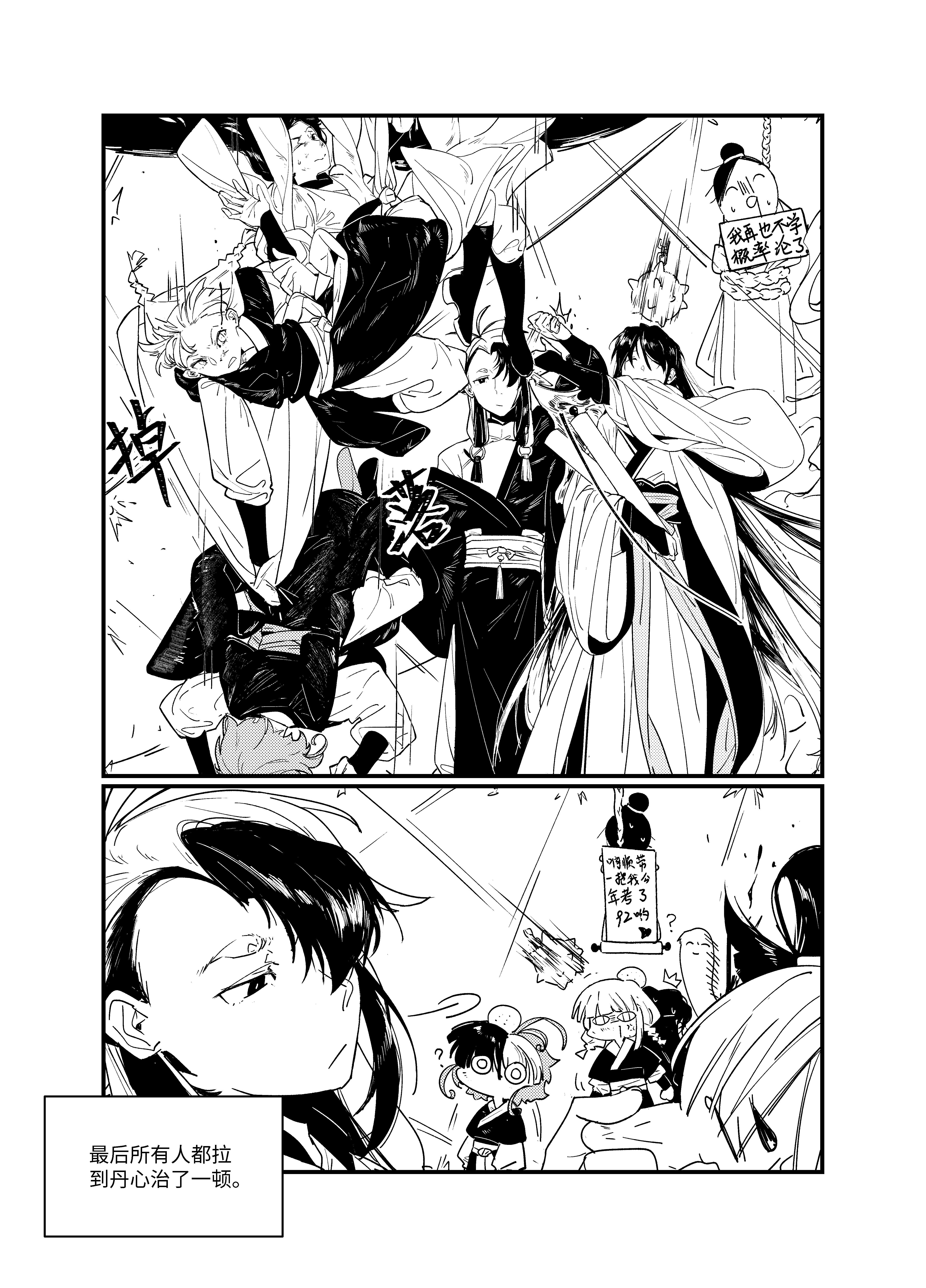 超级热闹甚至闹腾的大漫画!?90cm小孩把应山搅得天翻地覆感觉要上丹心黑名单了,每一格细节都太丰富,没有台词却还是好生动。最后那个概率论92怎么还有戒戒你好环节哈哈哈哈哈