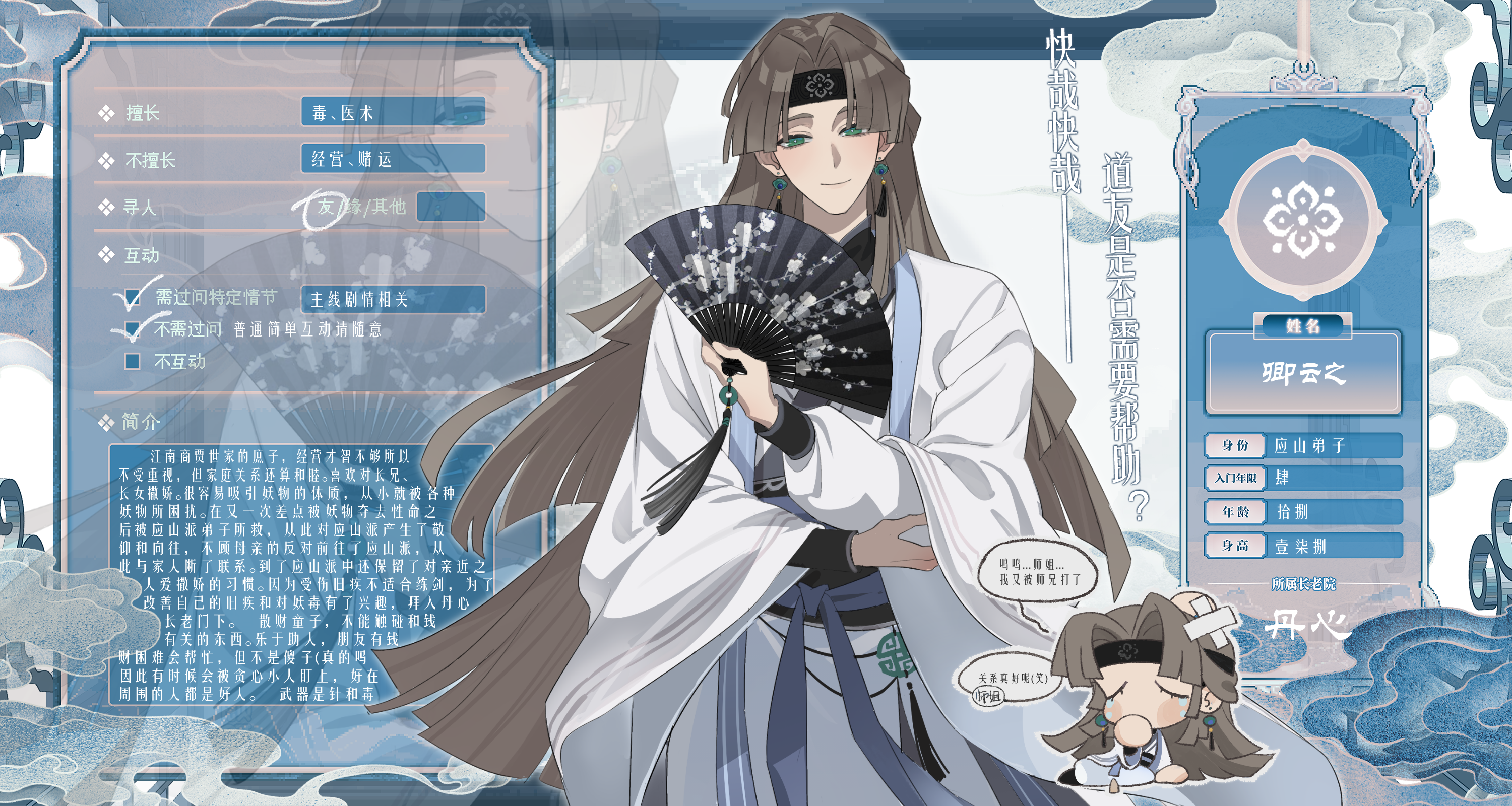 喜欢撒娇但是却能为了向往毅然上山,好喜欢这种反差!片状的头发好萌……爱笑的男孩运气都不会太差!(?)认真做药的你也很帅哦!