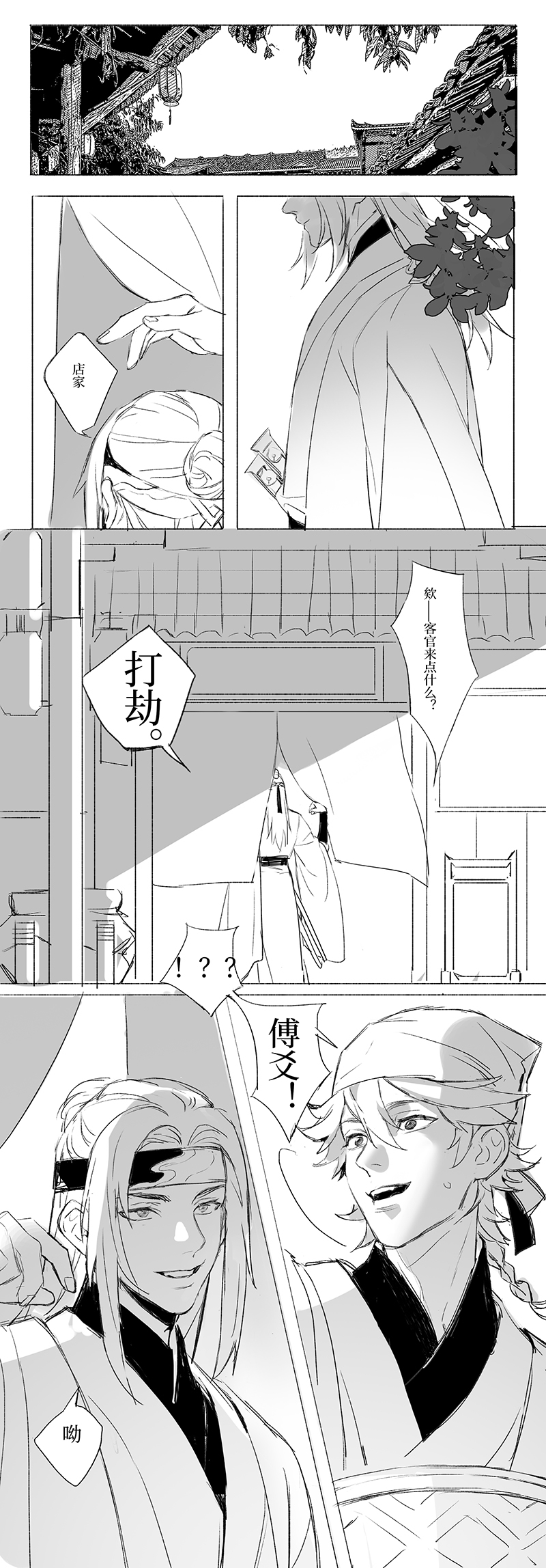 开屏爆笑了,打尖?打劫!刀柄铃铛的设计好实用,打架会自带音效吧(什)这个xx怎么这么帅啊,这个长青也是萌得不行,好喜欢对话里自然流露的亲近和熟悉感,嗑死我了嗑死我了!还俗真的是为了求道吗我不信