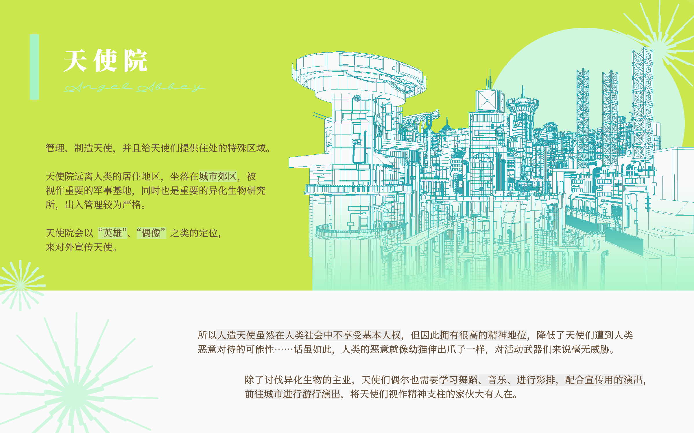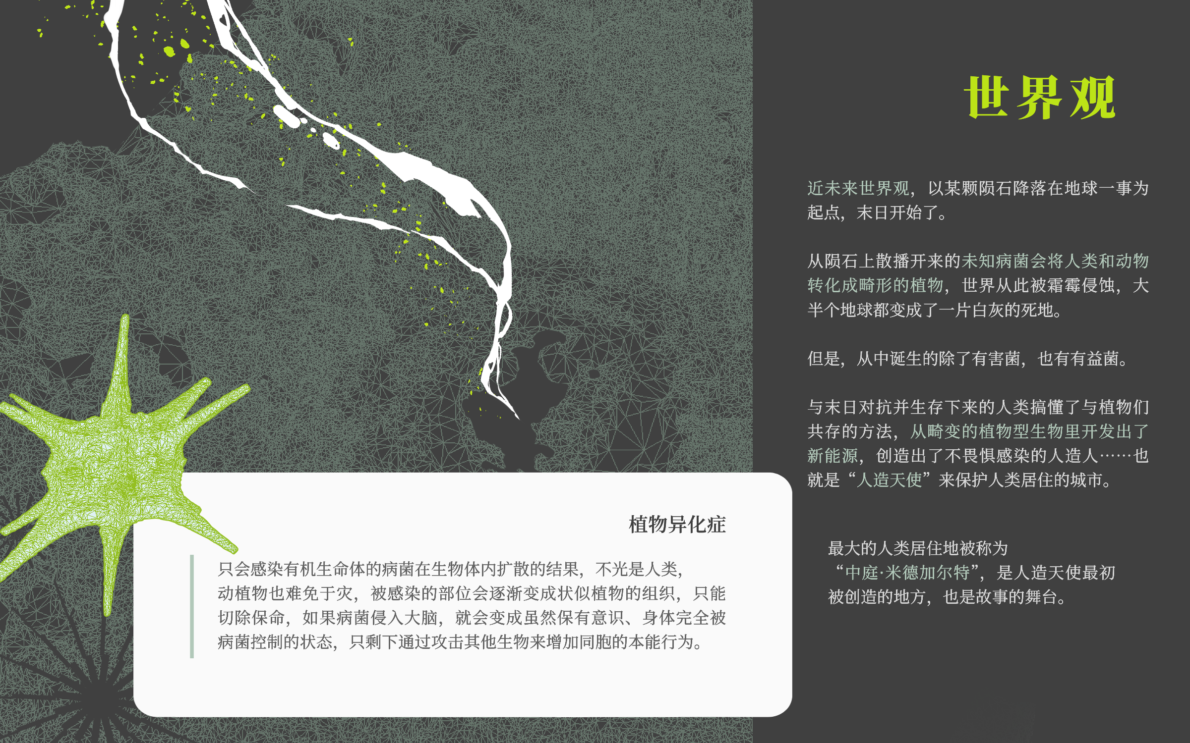 在泛滥的植物与霉菌淹没的世界中,此处是人造天使们的中庭,人类的庇护所。
