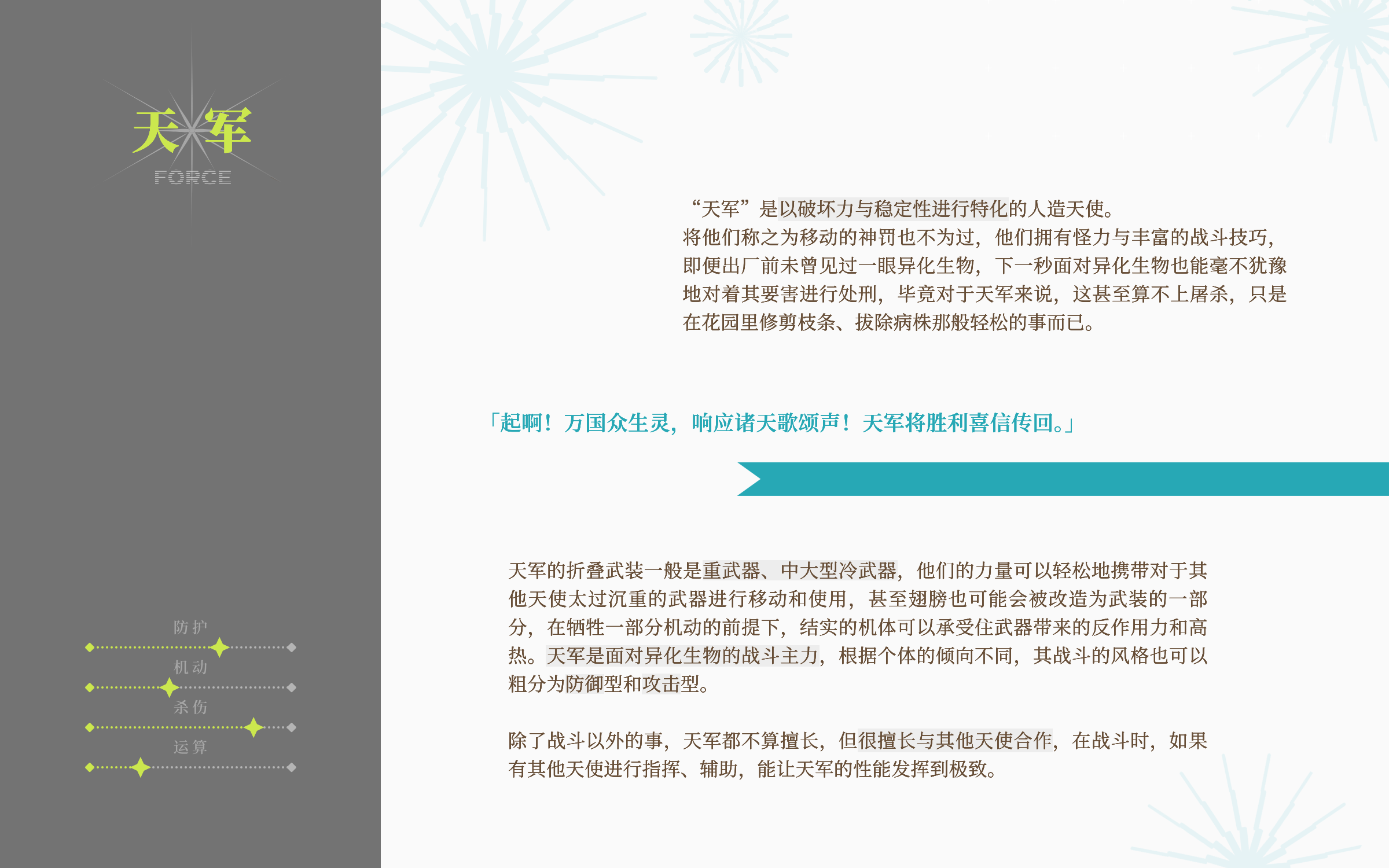 所谓人造天使,即为机械所赋予的小小奇迹,英雄们的活墓碑。