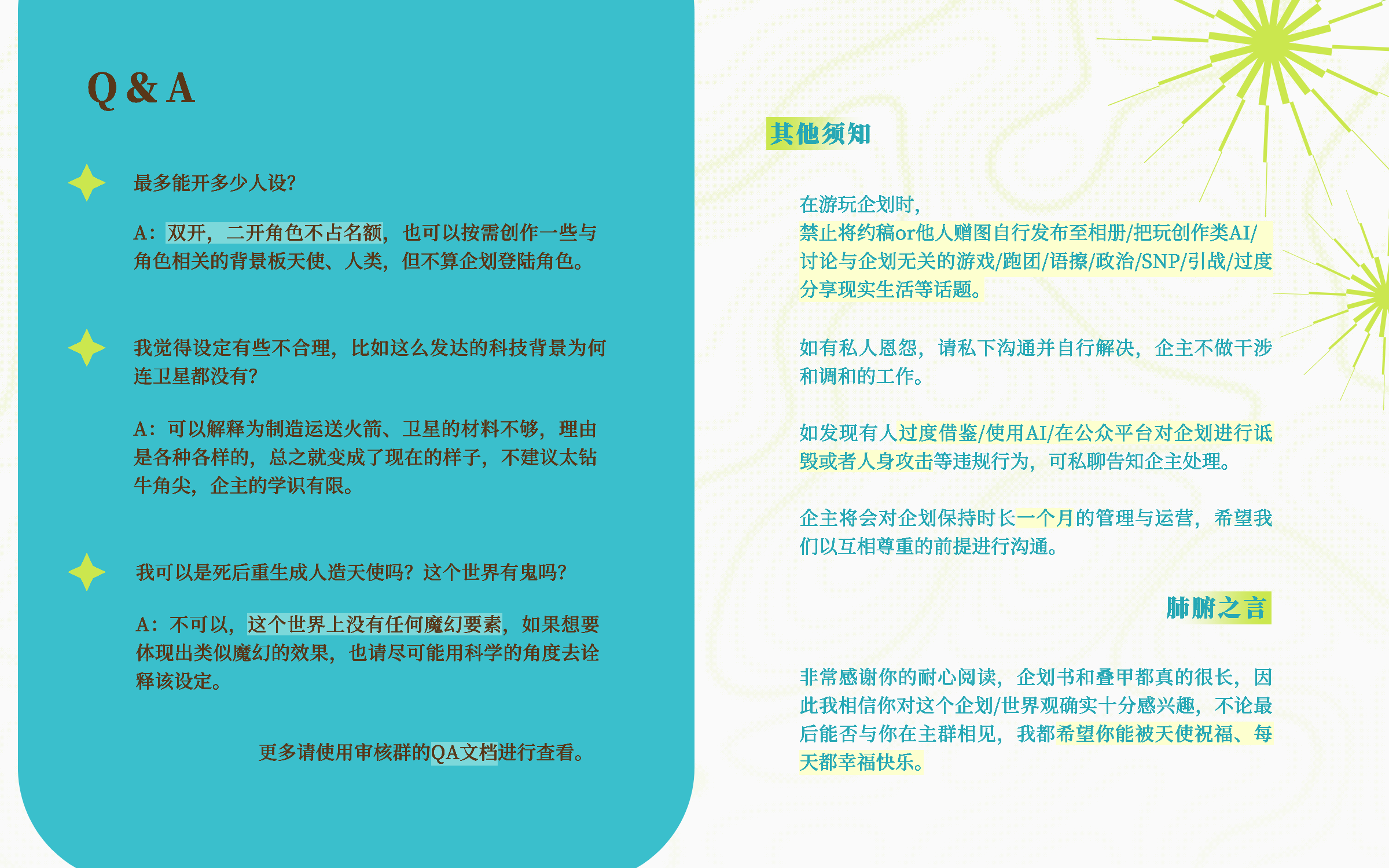 *正式企划书一共28p不含人设纸,QA在审核群中,感谢耐心阅读。