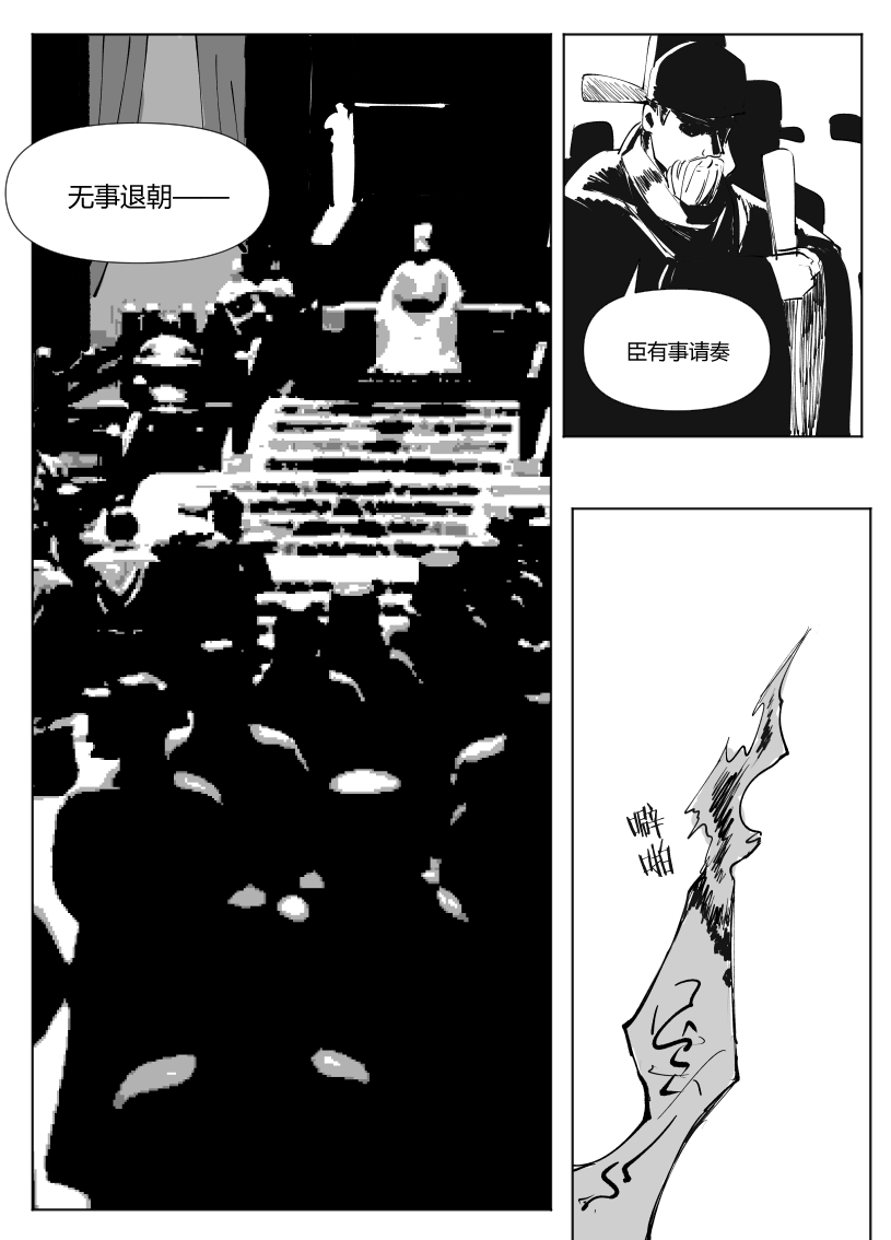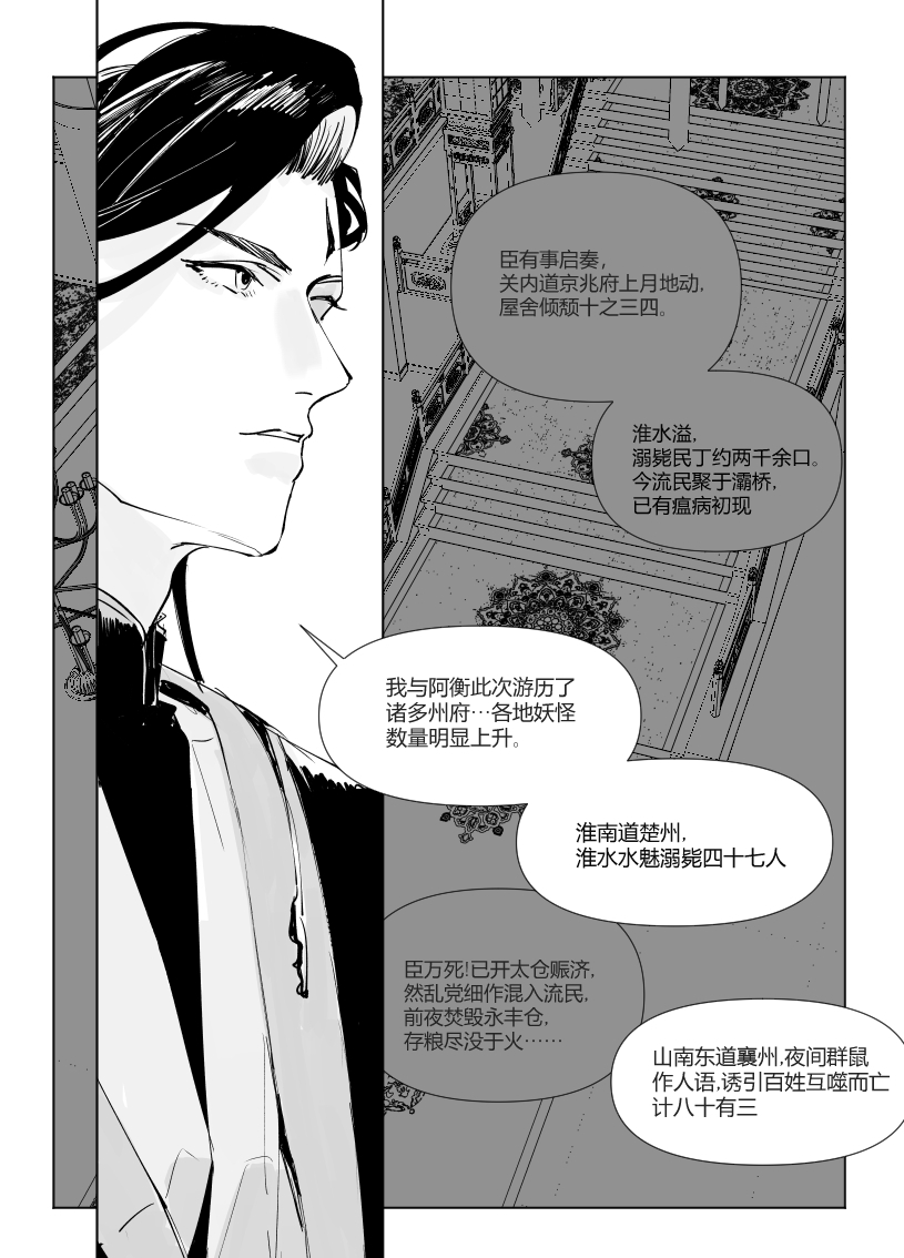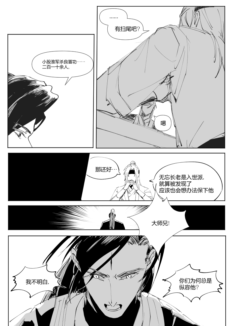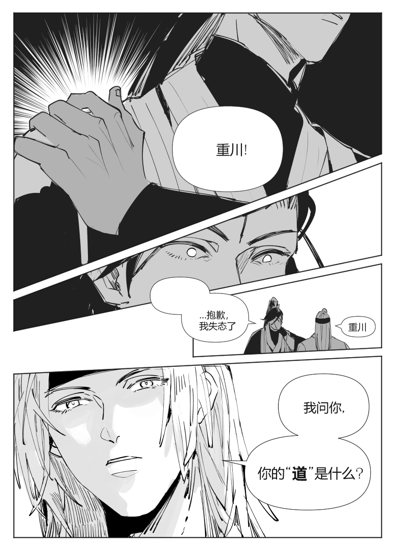 太强了,这才序章又出新的大漫画!很喜欢朝廷和二人对话交织的部分,非常有冲击力,以很一种有效的方式营造出一种山雨欲来的感觉。也期待玉衡这个角色后面剧情的发展,他作为这样一个有点跳脱门派戒律的人心中的“道”到底是什么,又会怎样影响他后续的行动
