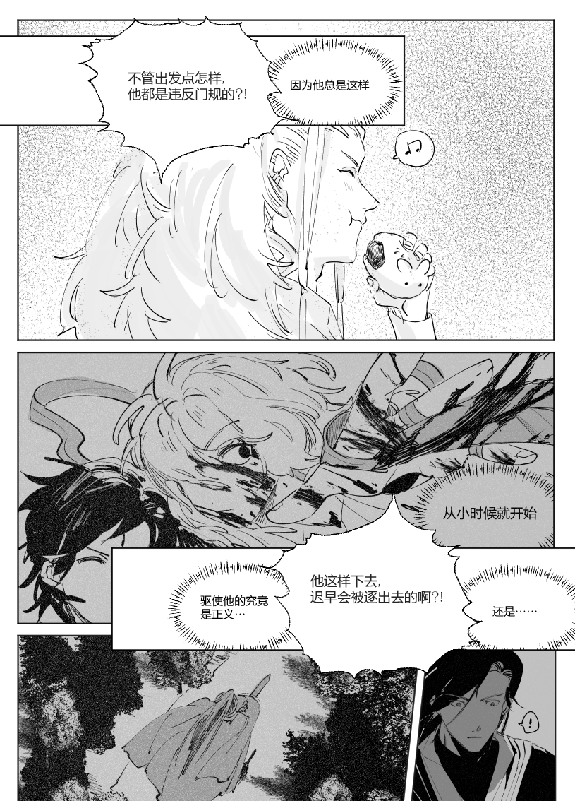 哦哦哦就这个观念冲突爽……!玉衡上一话帅帅的这一话好可爱啊忽然变得毛茸茸的(什么)傅爻看起来很随性但内里是个细心又内核稳定的人,重川反而有点容易内耗的样子,大家的性格都好鲜明啊。背景部分也太强太有文化了一下子就有了大家所在世界的真实感……最后几格看起来事情好像要暴露了?迫不及待地想看下一话……!!!