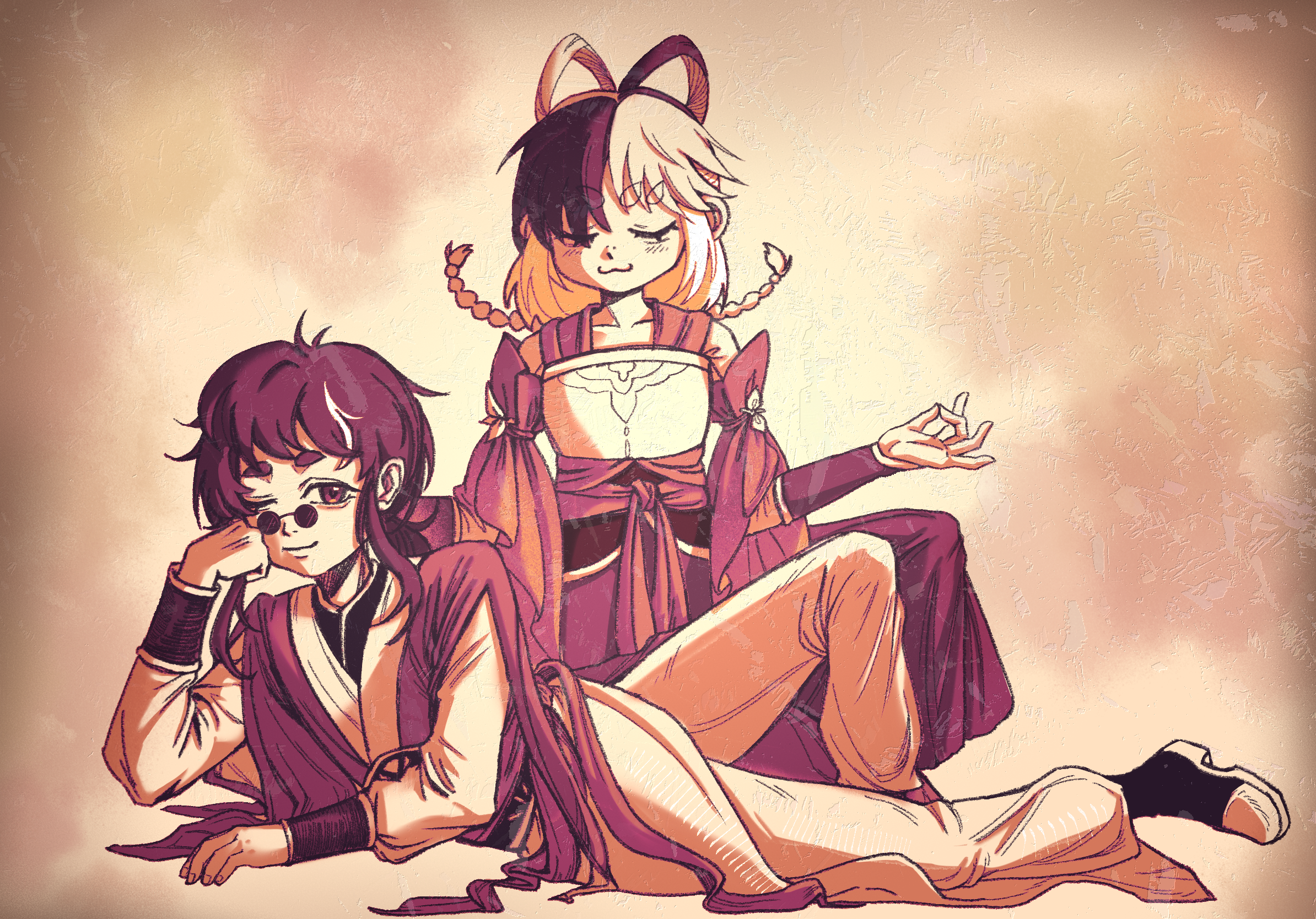一起晒太阳好!芬吉坐的好端正,这个错随地大小躺很真实了哈哈哈!