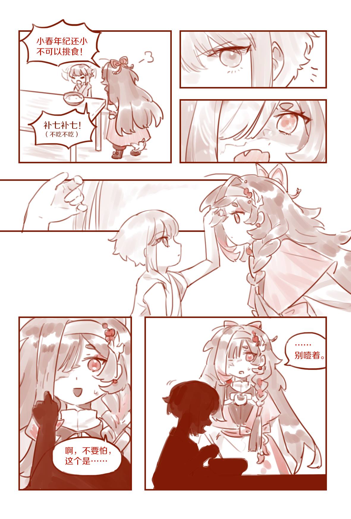 就这样喂饭喂到饱还有饭?我们司天很正经的(点头)小春长大好帅啊(依偎)