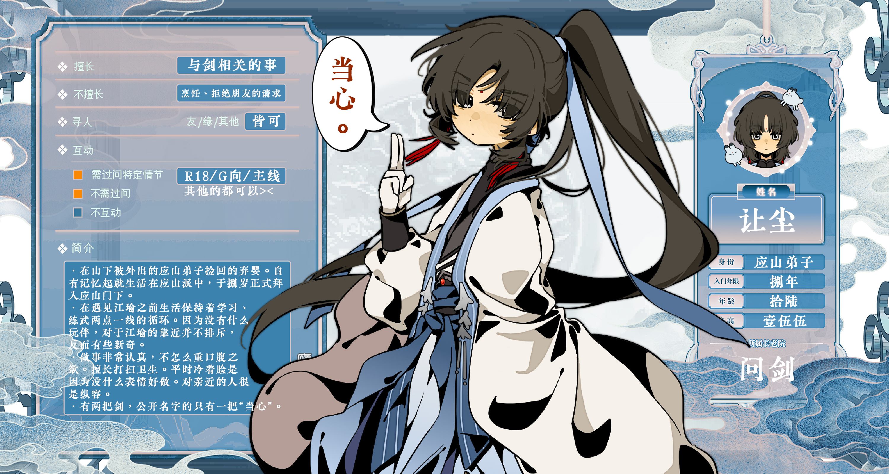 叫当心好有趣,对敌的时候大喊一声“当心!!”在对方愣神的时候剑就飞过去了