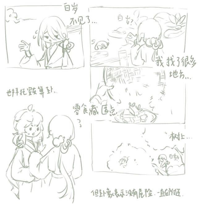 如此萌物如此萌物T_T!!好温暖的场景啊!<(ToT)>我和白岁贴贴贴贴!我们不能分离——。等等,师姐酒酒…酒全喝完了?