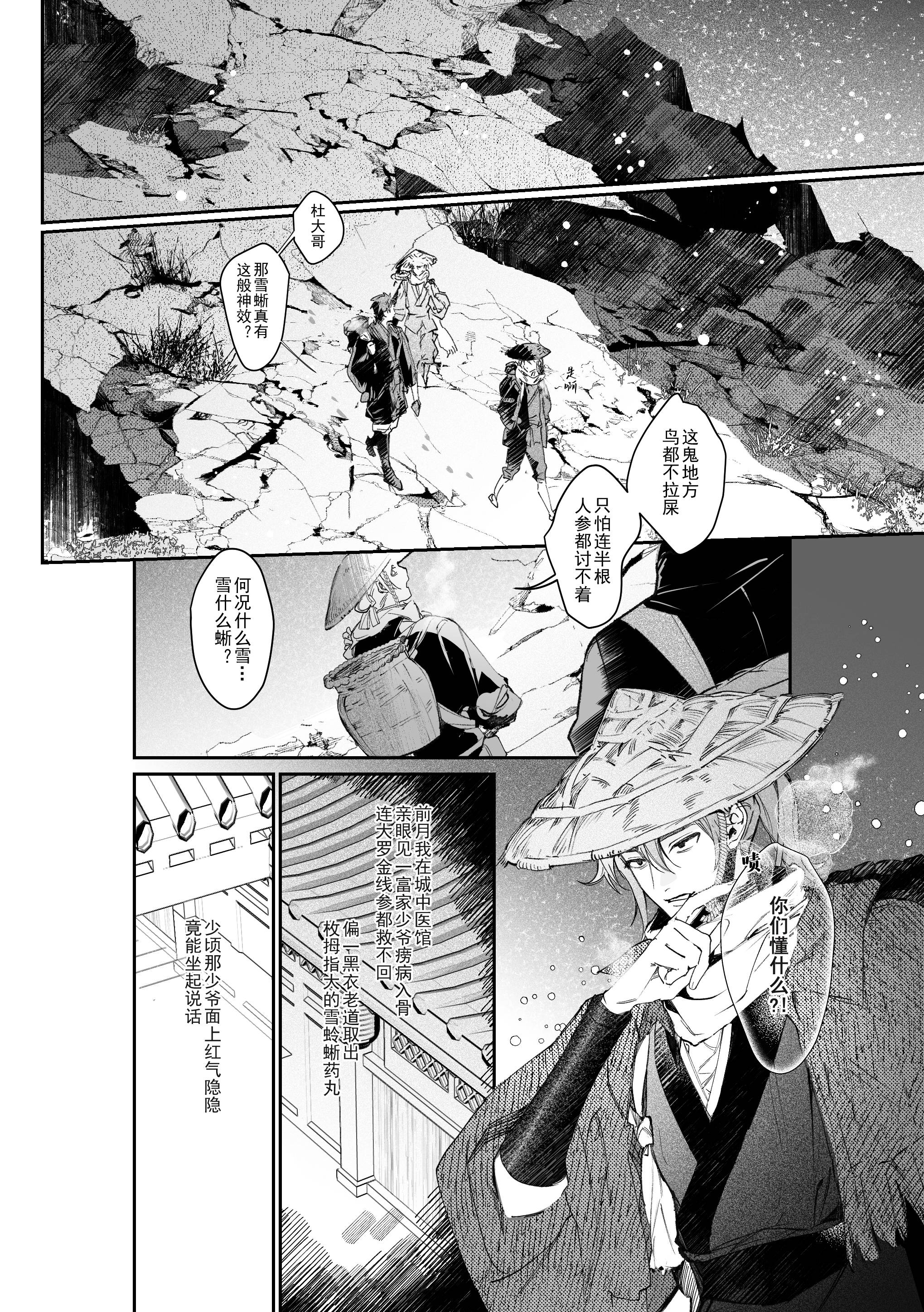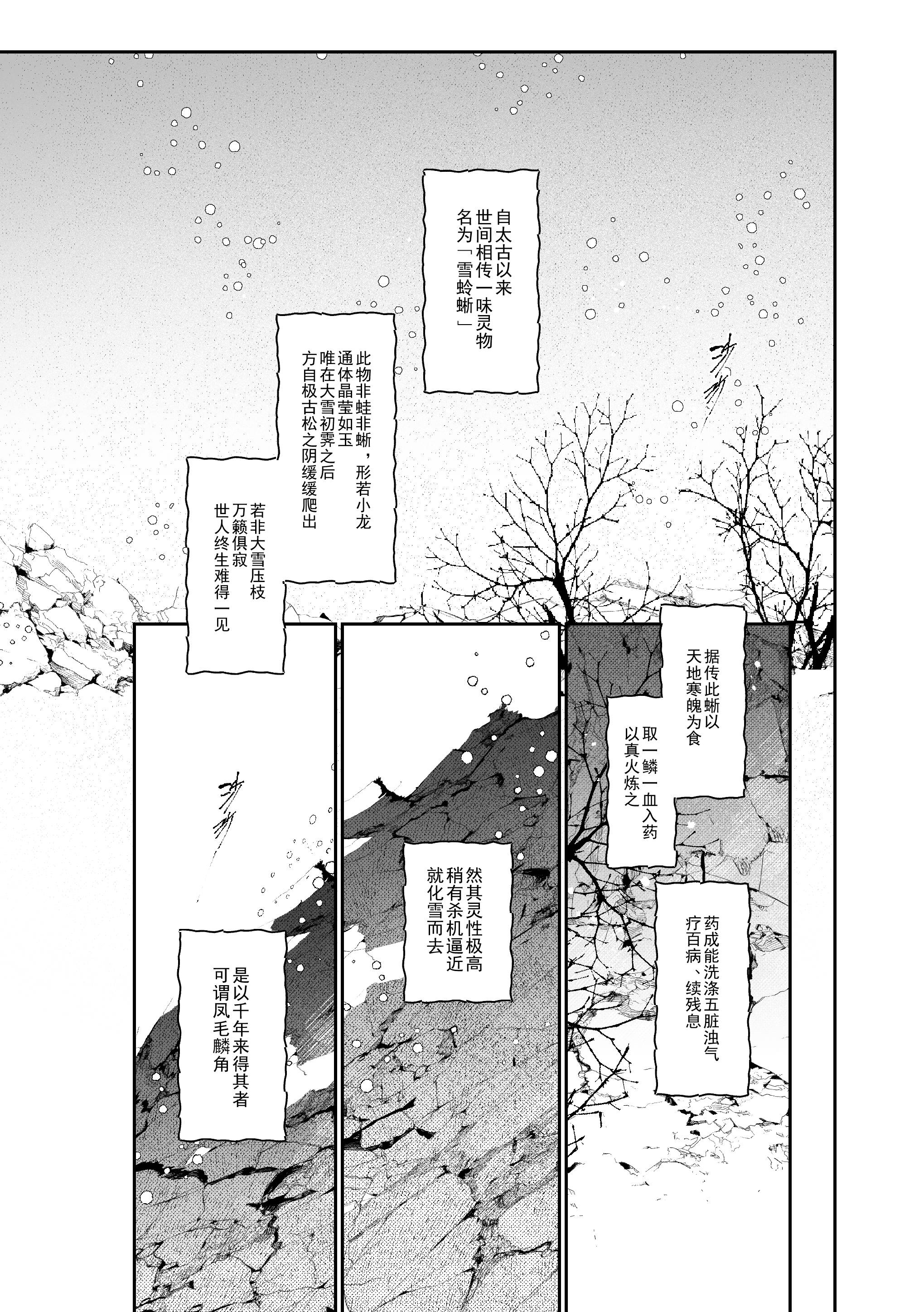 哇……开头的故事引入感太好了……听起来超级有趣的传说,会有人为了这个千里上雪山也不奇怪吧!!对于功效的向往,对于价值的衡量,一切都溶于豹子一样矫健的少女嘴中的不好吃……老大画得好看文笔也好好!!!