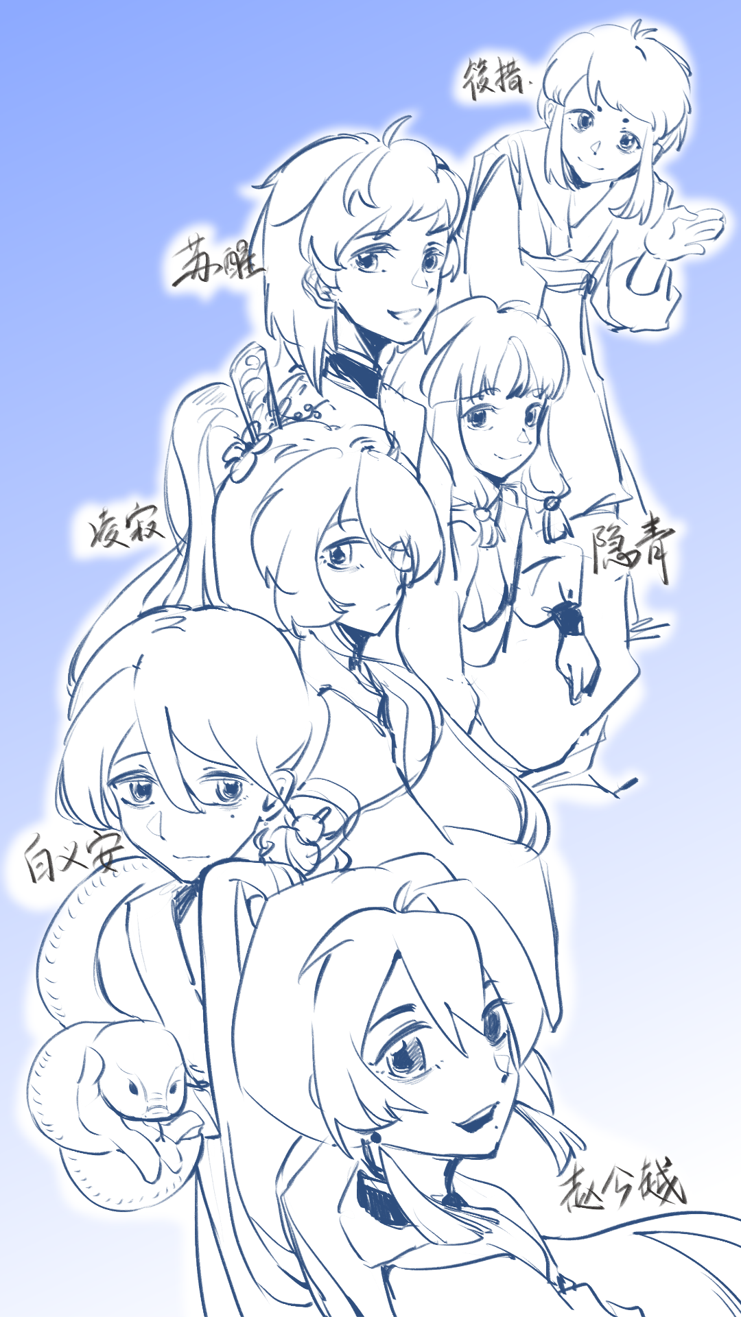 是琢磨很久的六人构图!(多人真的好难啊!总之会有的透视错误等请忽略哈哈哈哈。