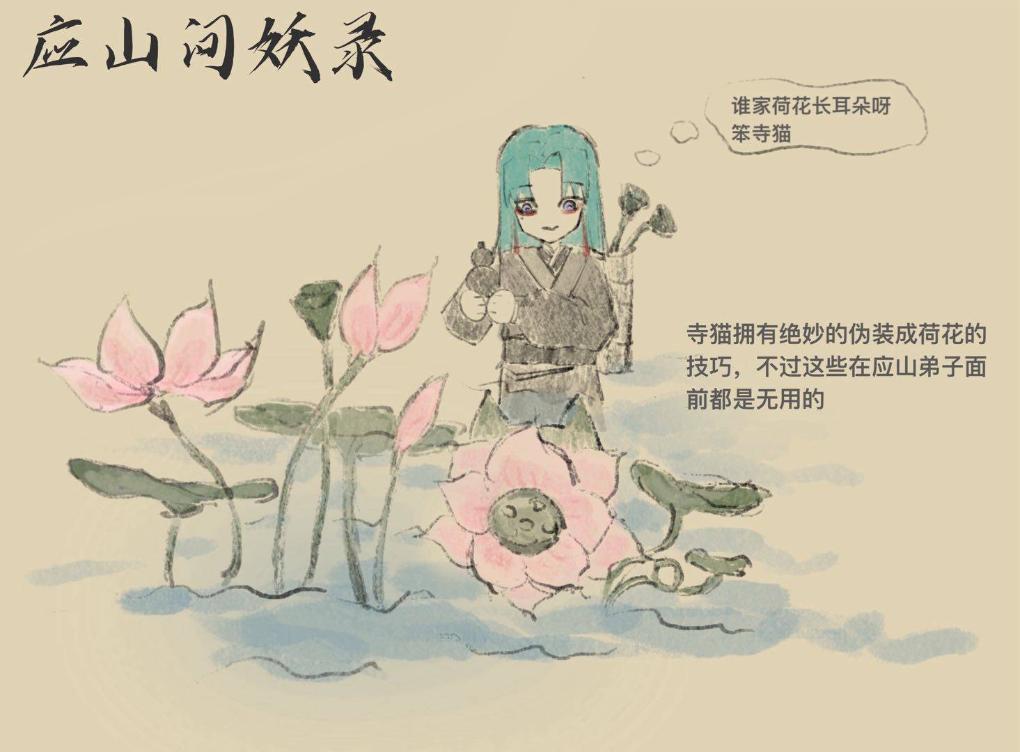 (寺猫拥有绝妙的伪装成荷花的技巧,伪装成荷花吃掉来采莲子的人类超方便吧!)