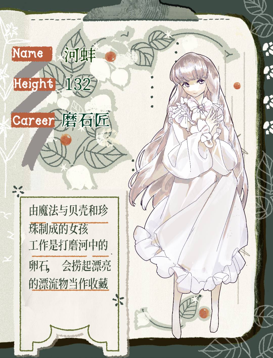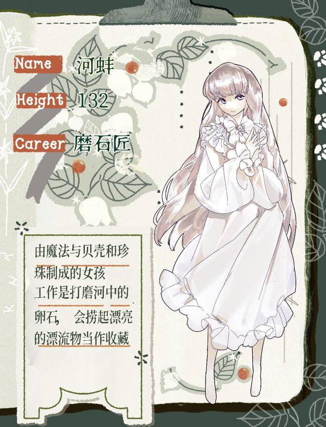 由贝壳和珍珠制成的女孩 工作是打磨河中的卵石