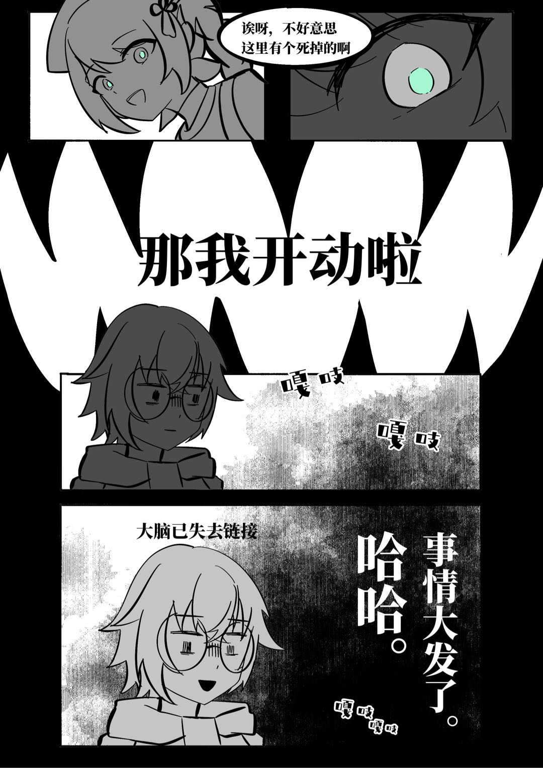 满露吃了好多啊连自己都吃xxxx 比起害怕眼前这个吃自己的店长还是吐槽欲更胜一筹!!(设想里面梁是因为恐惧失去冷静前会优先吐槽缓冲一下的类型x)