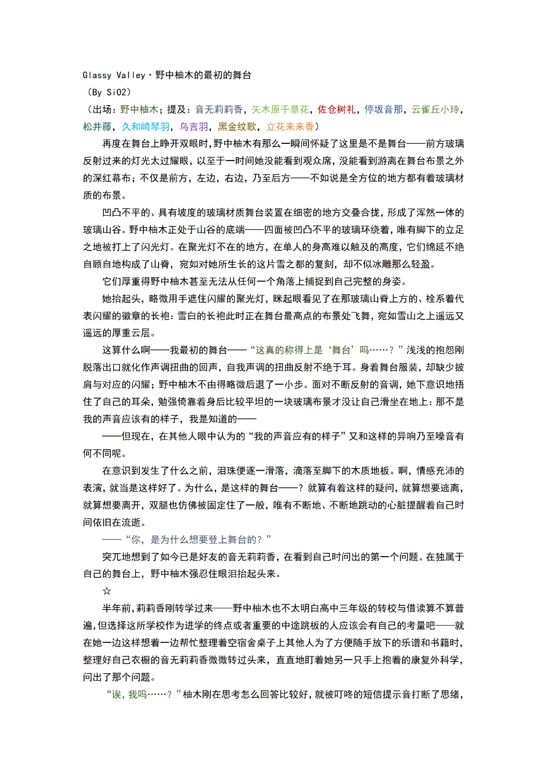 Glassy Valley·野中柚木的最初的舞台