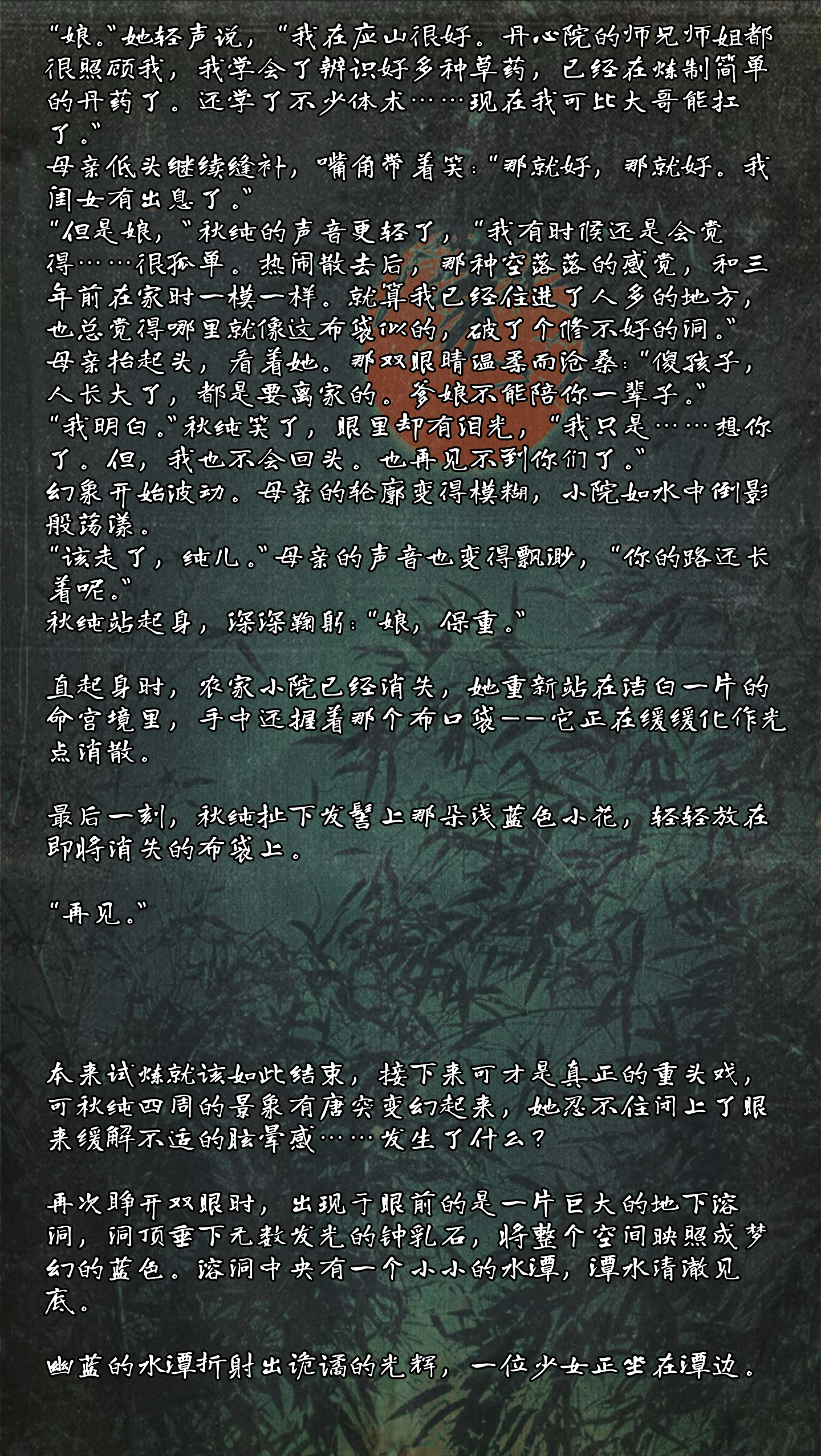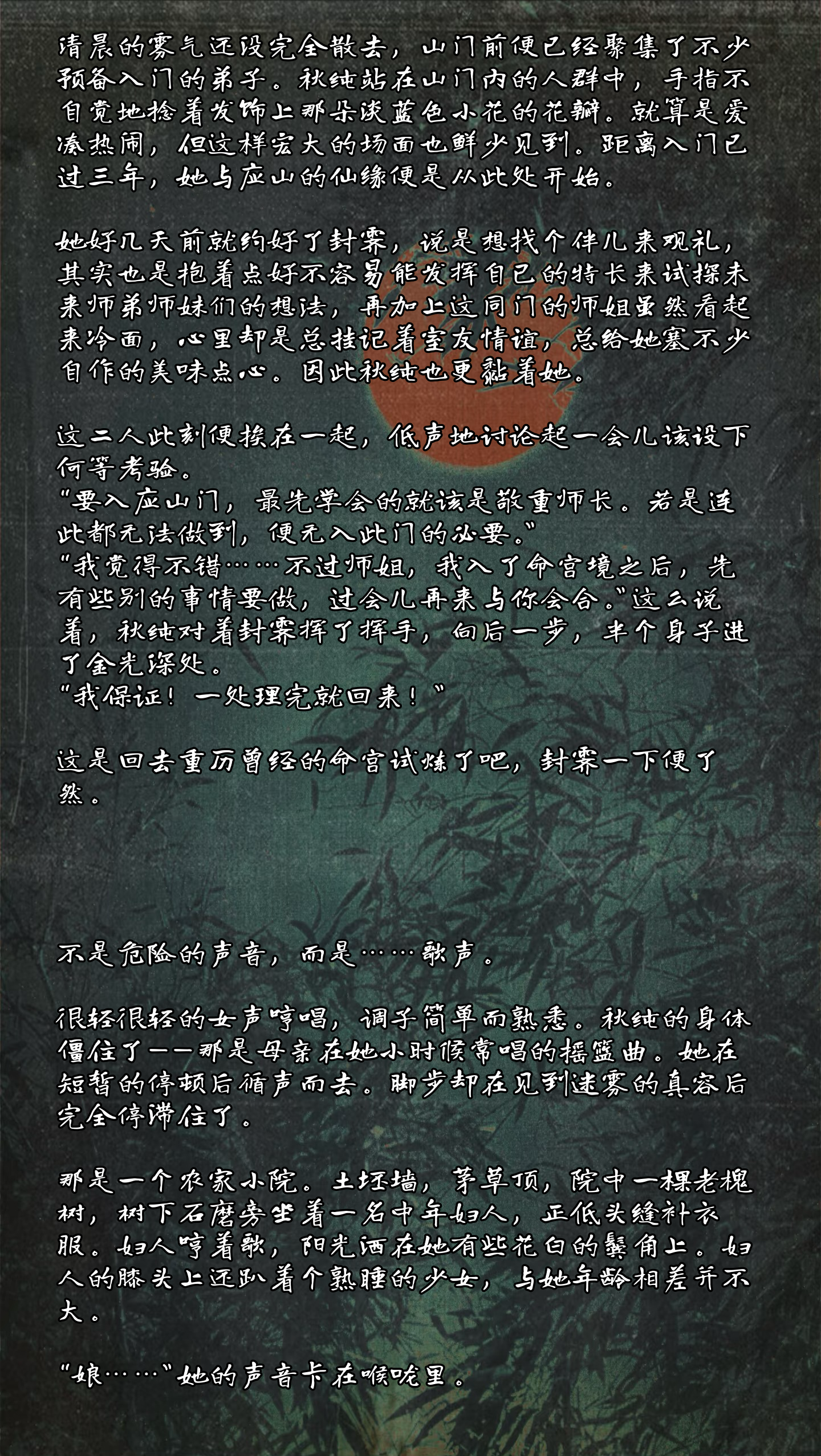 基本上算是序章+一章的内容,全是在补背景设定的一章,希望下次不要再滑铲了!稍微提了一两句师姐就不打扰响应了。
